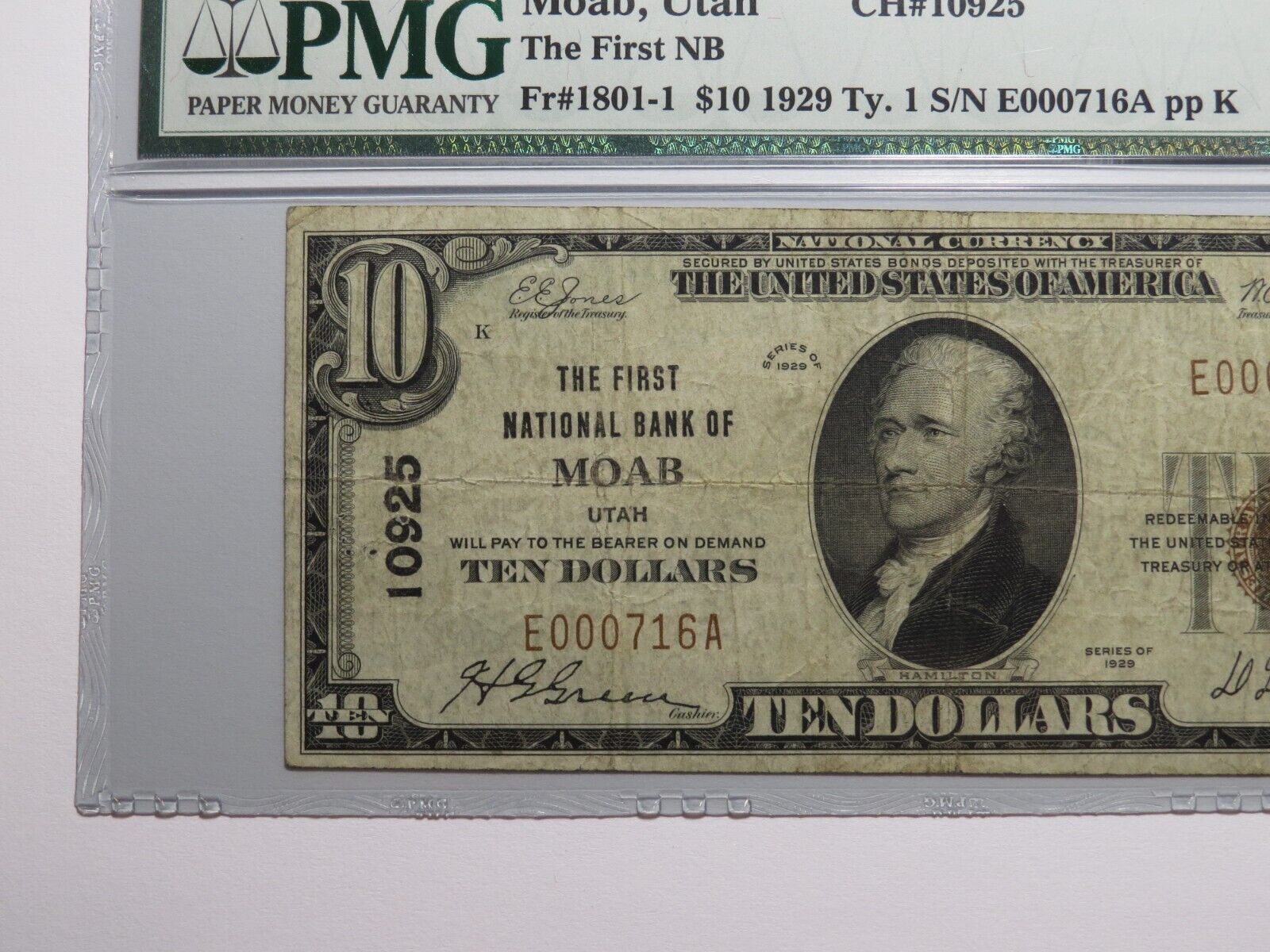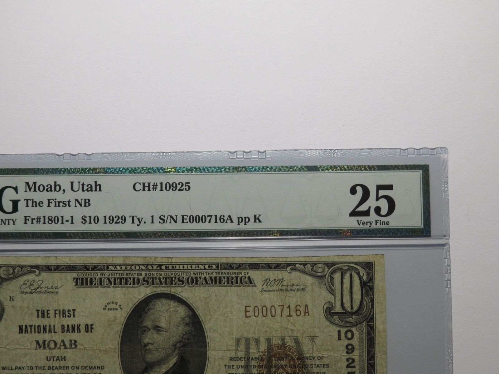 $10 1929 Moab Utah UT National Currency Bank Note Bill Charter #10925 VF25 PMG