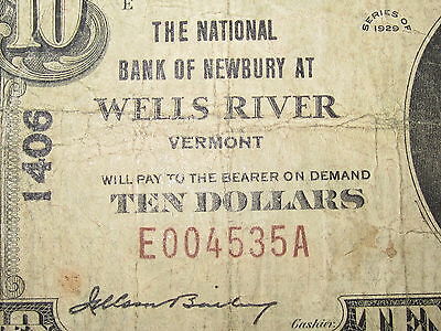 $10 1929 Type 1 Wells River Vermont National Currency Note!
