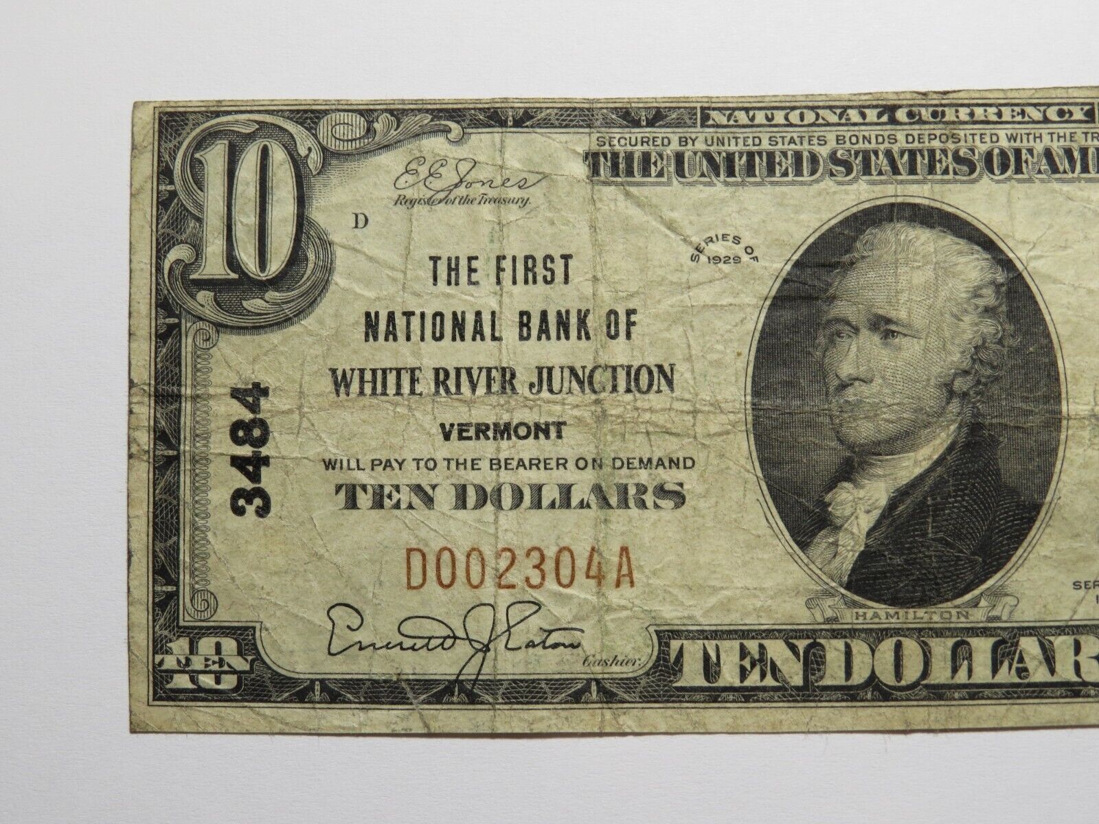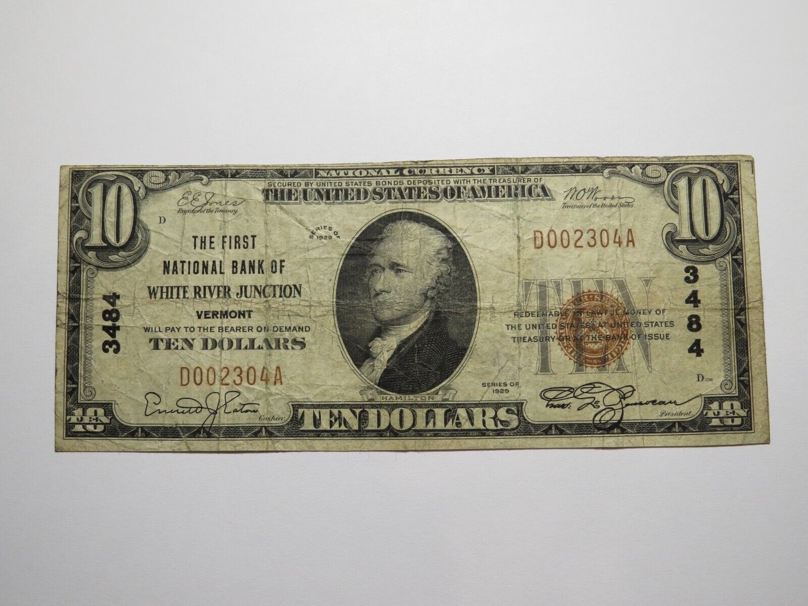 $10 1929 White River Junction Vermont National Currency Bank Note Bill Ch. #3484