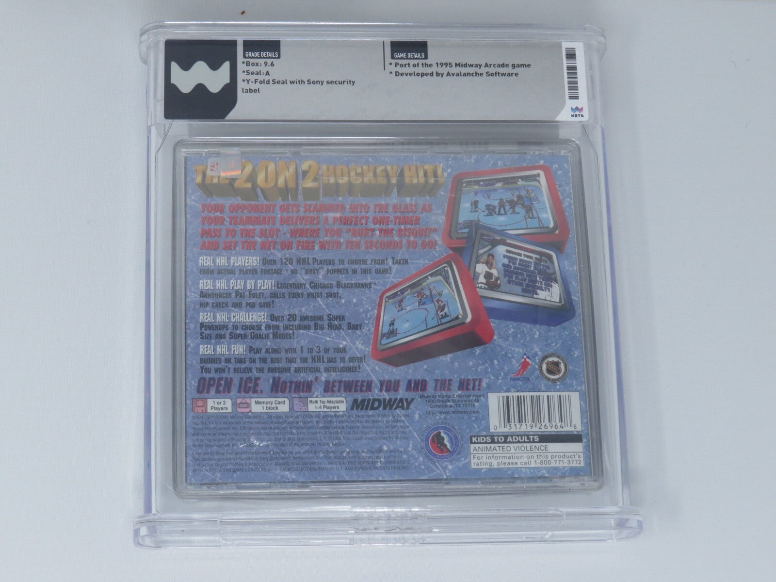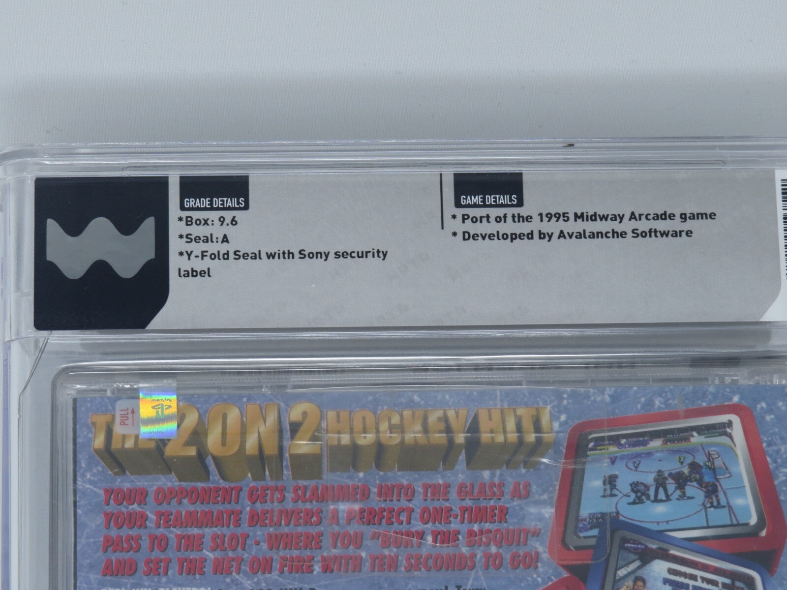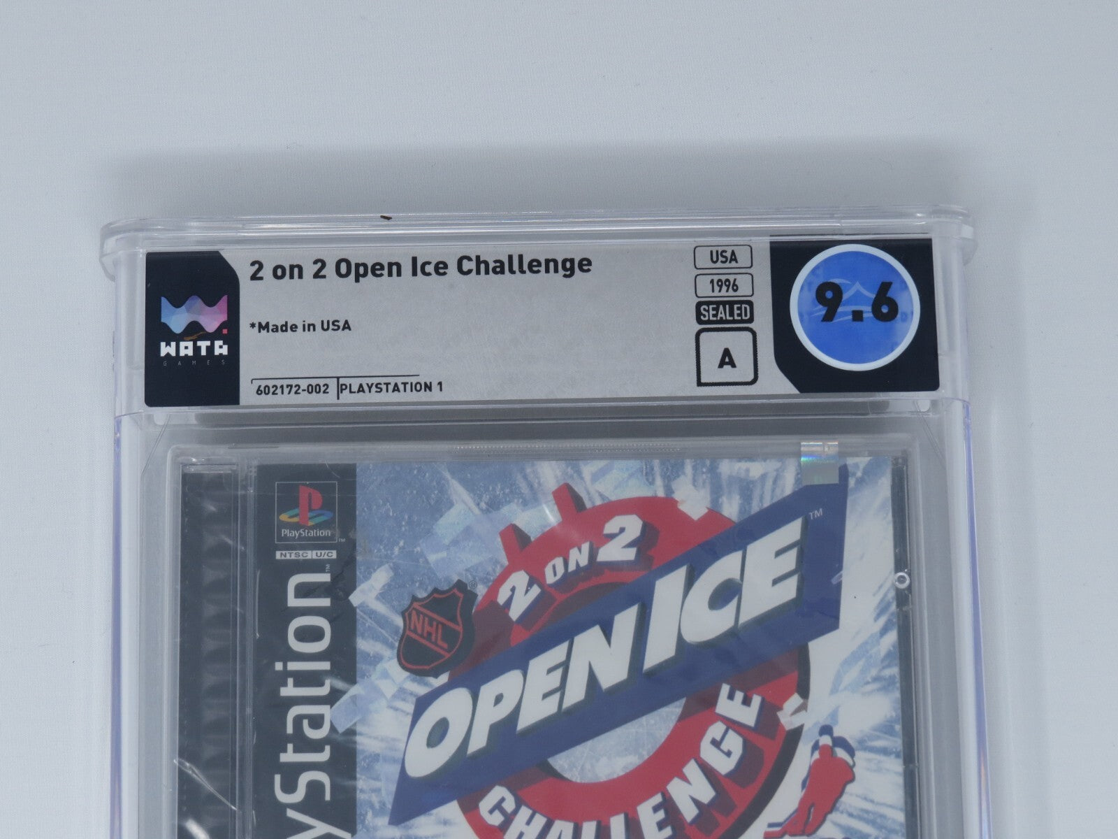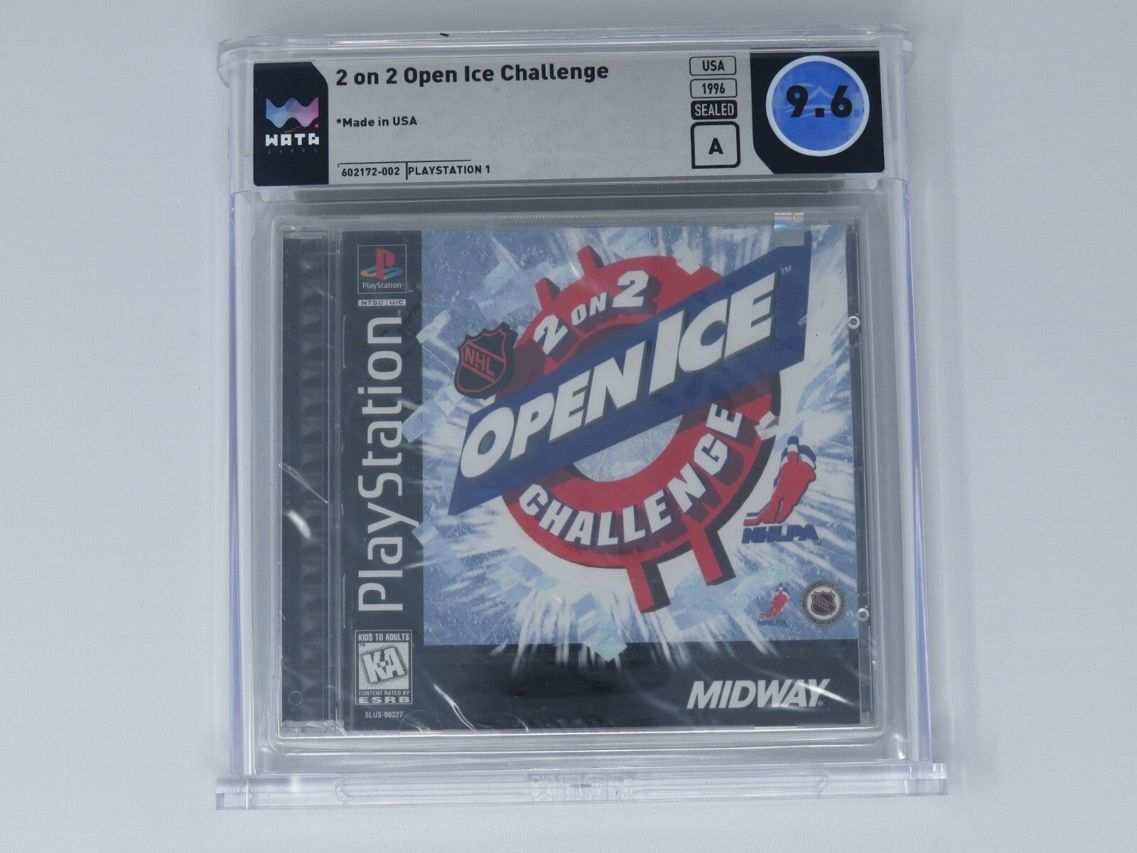 Up for auction is an Original 2 on 2 Open Ice Challenge Sony Playstation Sealed Video Game. This sealed game has been graded a 9.6 by Wata. The seal on the game was graded an A. This is the highest graded copy Wata has ever graded for this game. They have only graded two copies and I own both. Outside of these two copies, I have never seen another sealed copy of this game. This is a great chance to pick up a classic Playstation game!