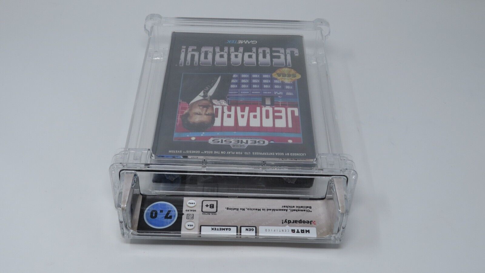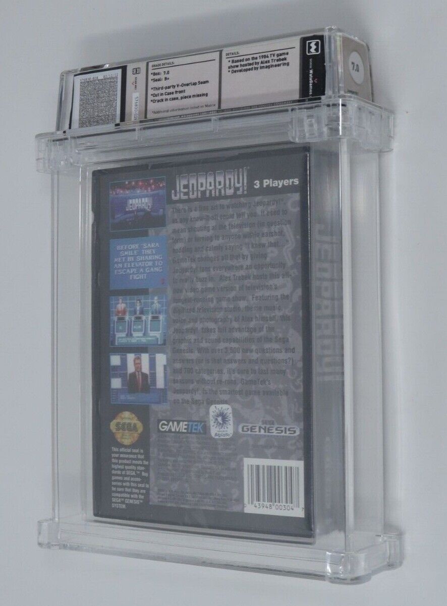 Up for auction is a Jeopardy! Sega Genesis Sealed Video Game. This sealed game has been graded a 7.0 by Wata. The seal on the game was graded a B+. This is a great chance to pick up a classic game. If you have any questions please feel free to ask!