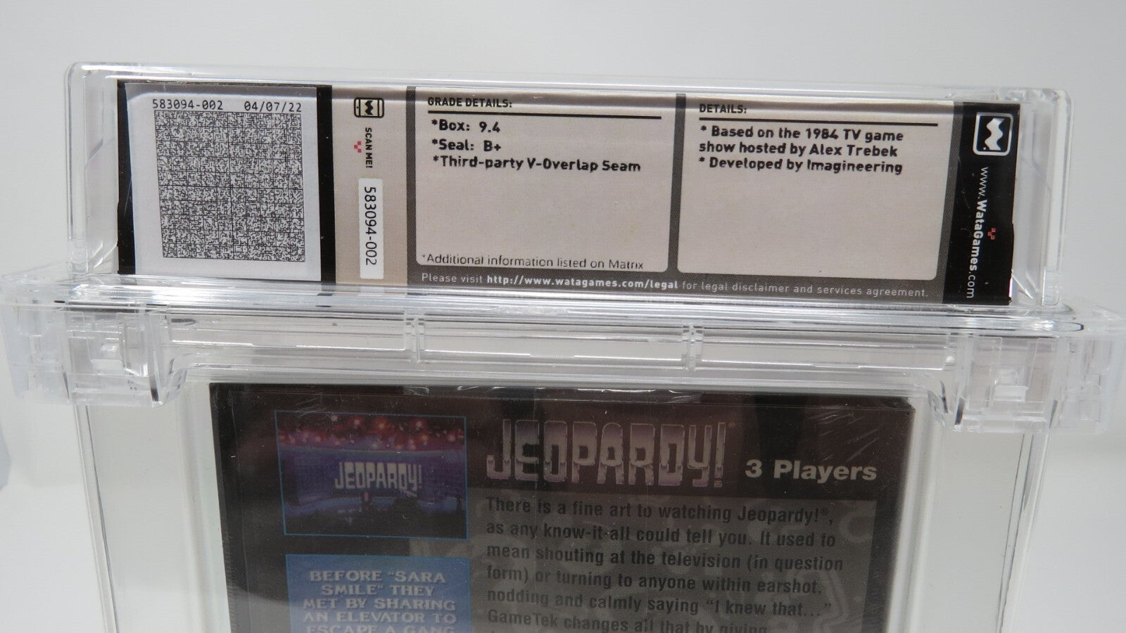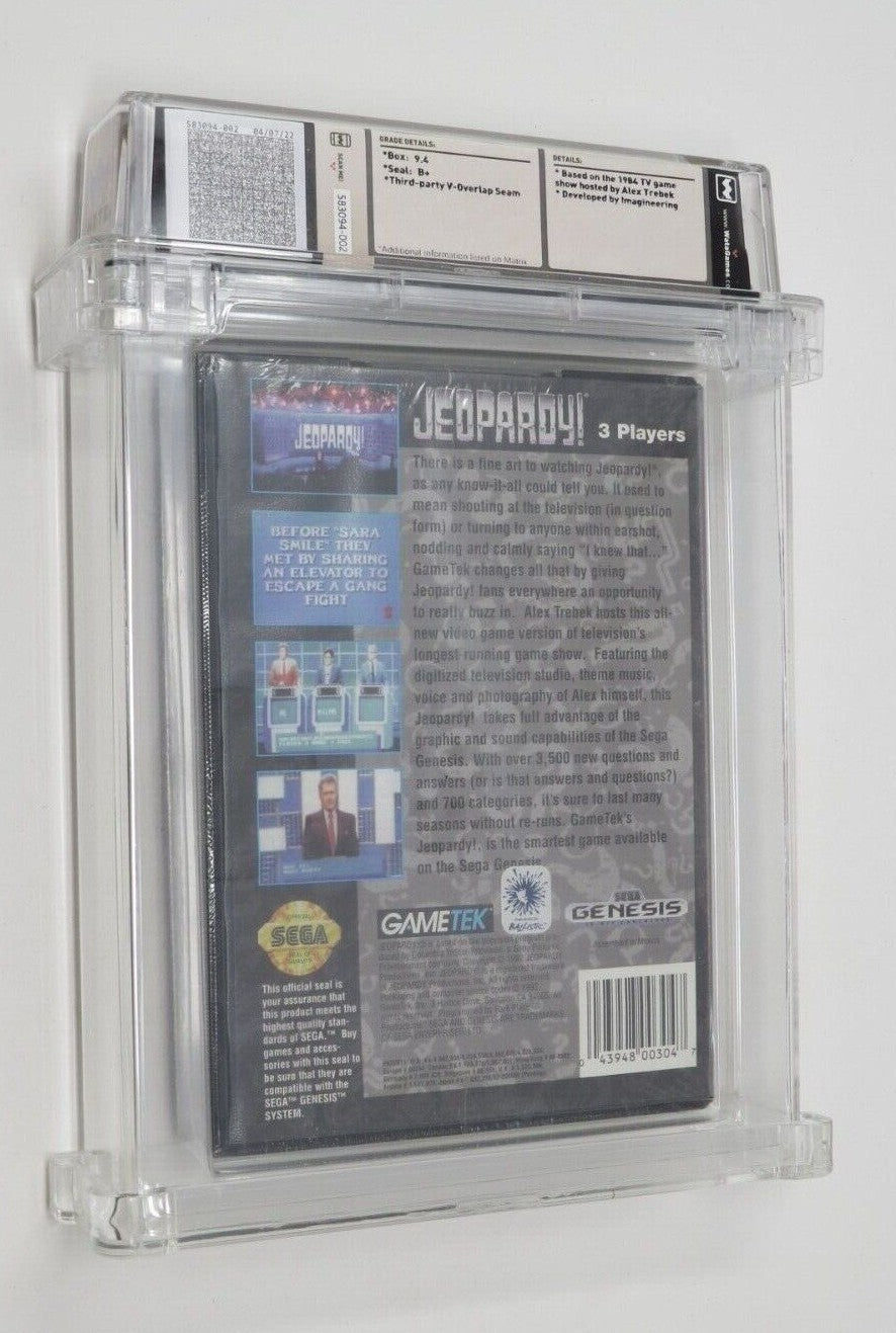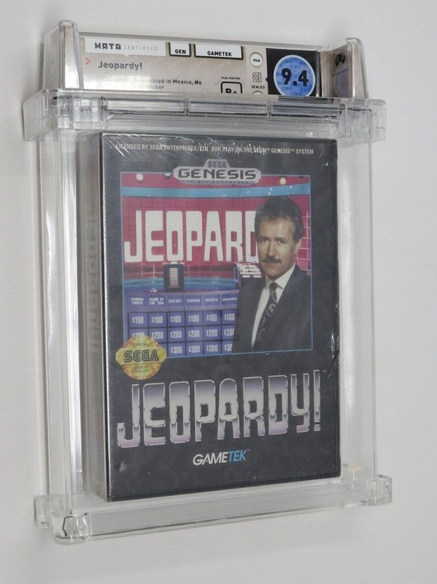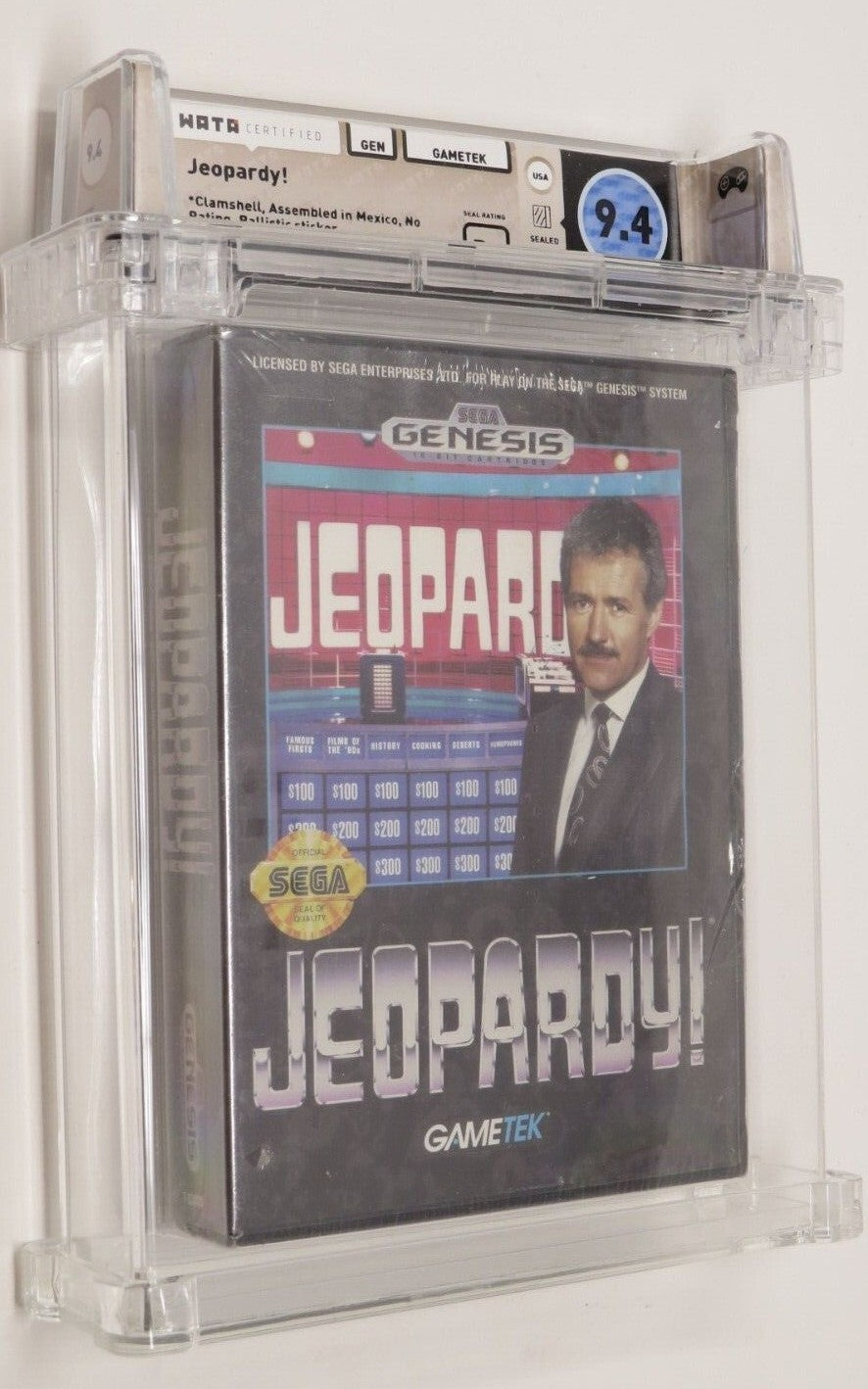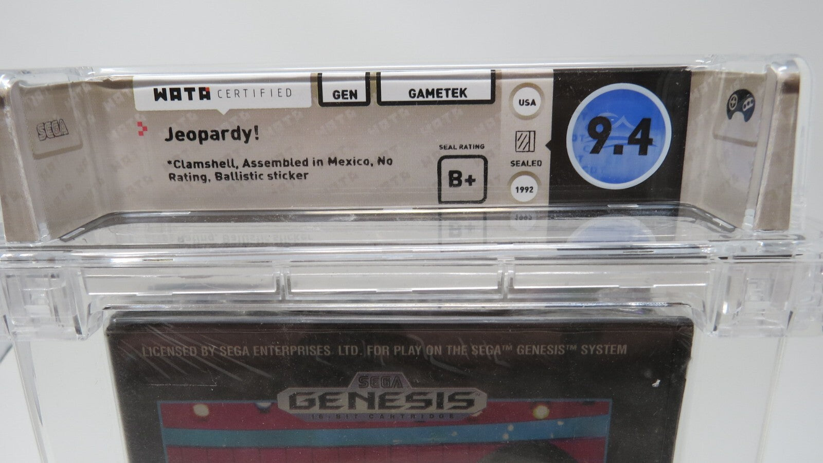 Up for auction is a Jeopardy! Sega Genesis Sealed Video Game. This sealed game has been graded a 9.4 by Wata. The seal on the game was graded a B+. This is a great chance to pick up a classic game. If you have any questions please feel free to ask!
