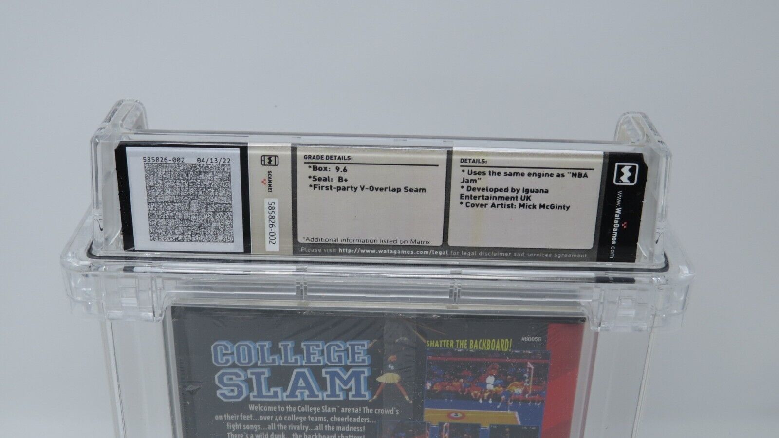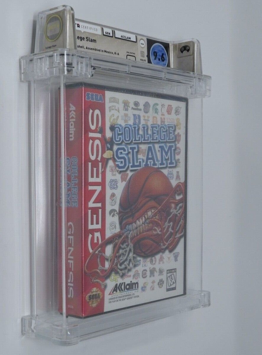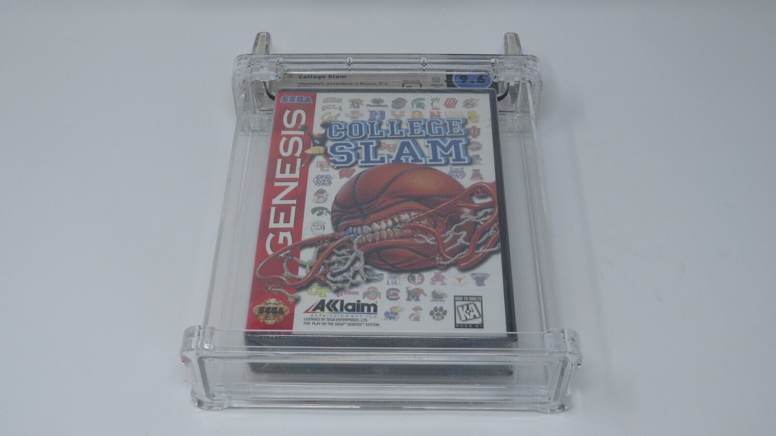 Up for auction is a College Slam Sega Genesis Sealed Video Game.  This sealed game has been graded a 9.6 by Wata.  The seal on the game was graded an B+.  This is the highest graded copy in the population report for this title.  This is a great chance to pick up a classic game.  If you have any questions please feel free to ask!