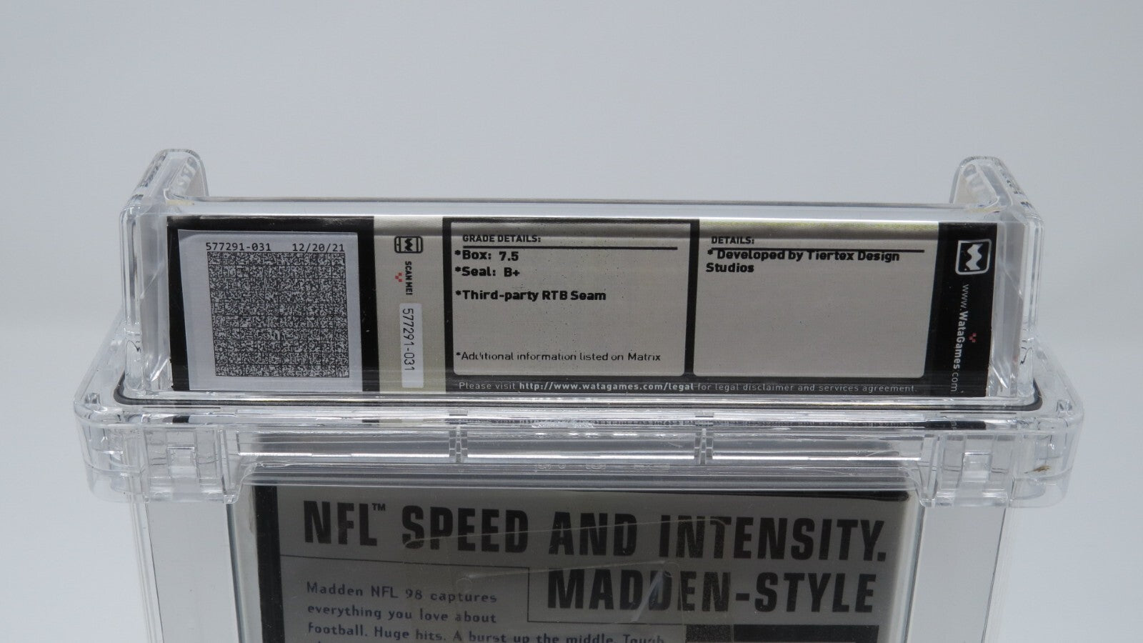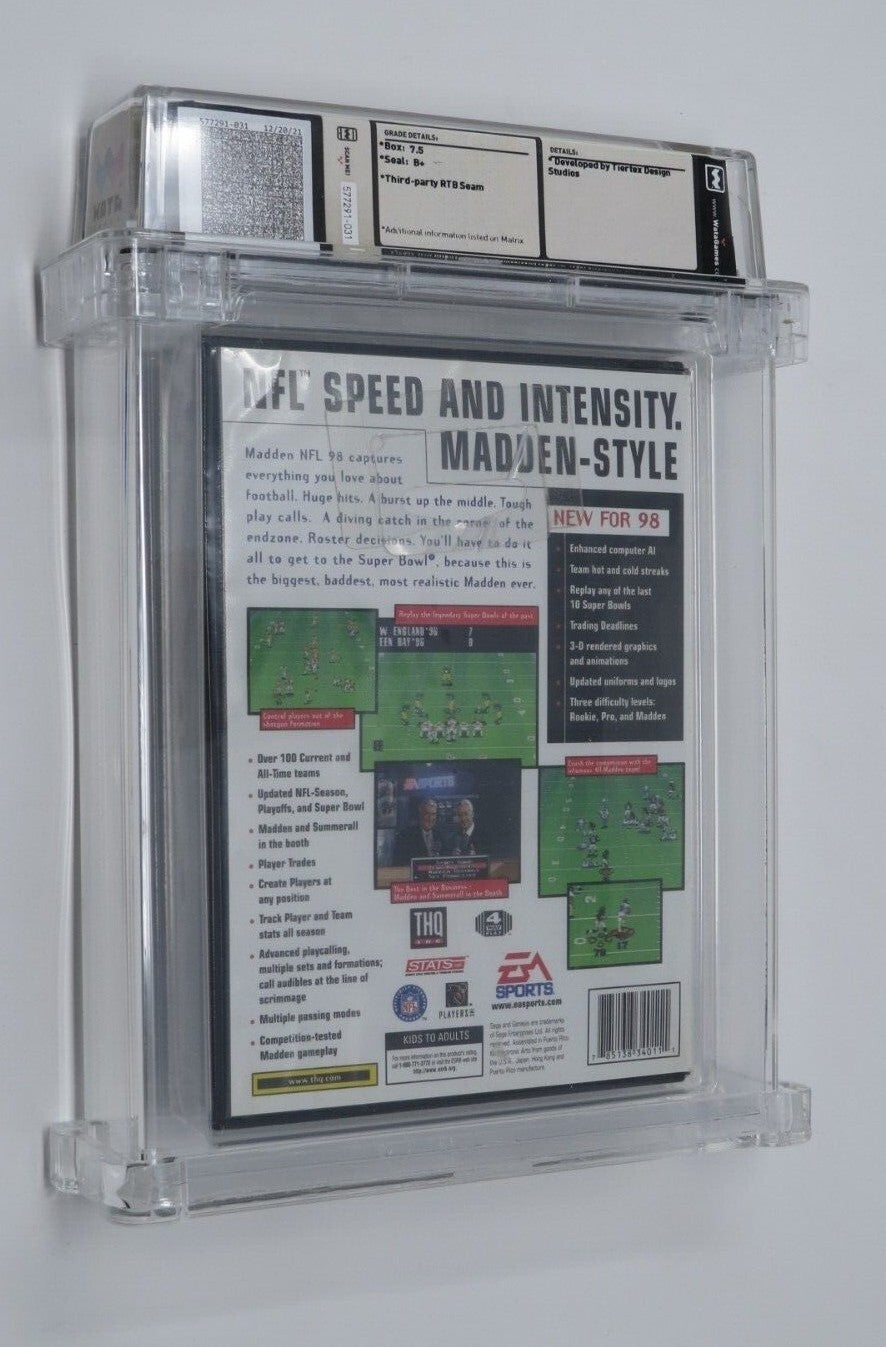 Up for auction is a Madden '98 NFL Football Sega Genesis Sealed Video Game. This sealed game has been graded a 7.5 by Wata. The seal on the game was graded a B+. This is a great chance to pick up a classic game. If you have any questions please feel free to ask!