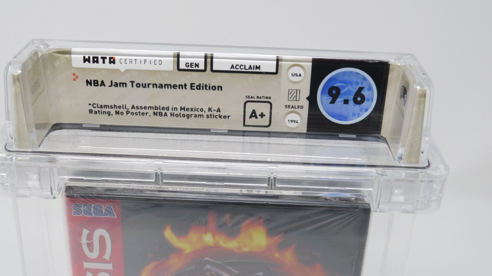 Up for auction is an NBA Jam Tournament Edition Sega Genesis Sealed Video Game. This sealed game has been graded a 9.6 by Wata. The seal on the game was graded an A+. This is one of the highest grades that you will see! This is a great chance to pick up a classic game. If you have any questions please feel free to ask!