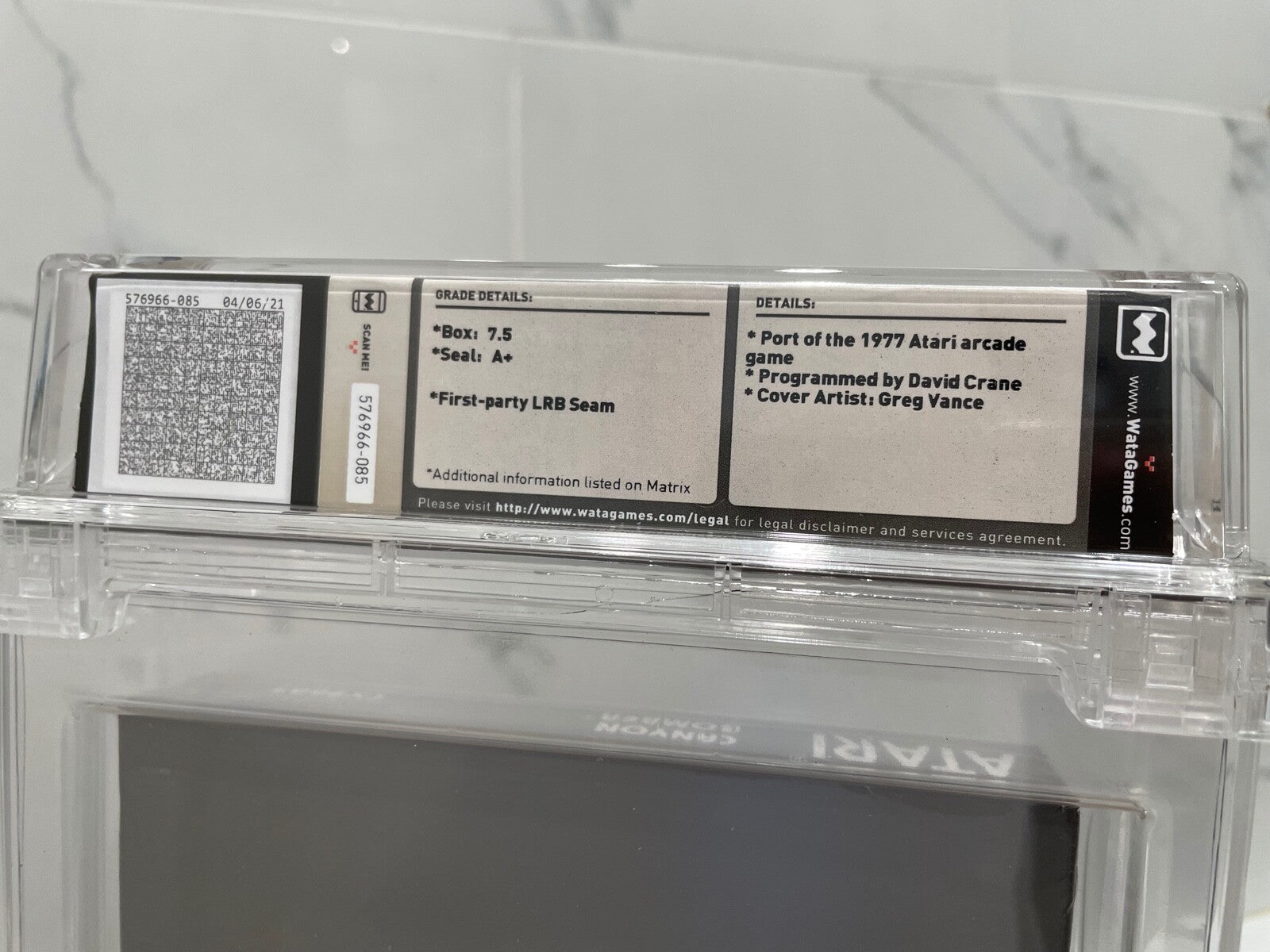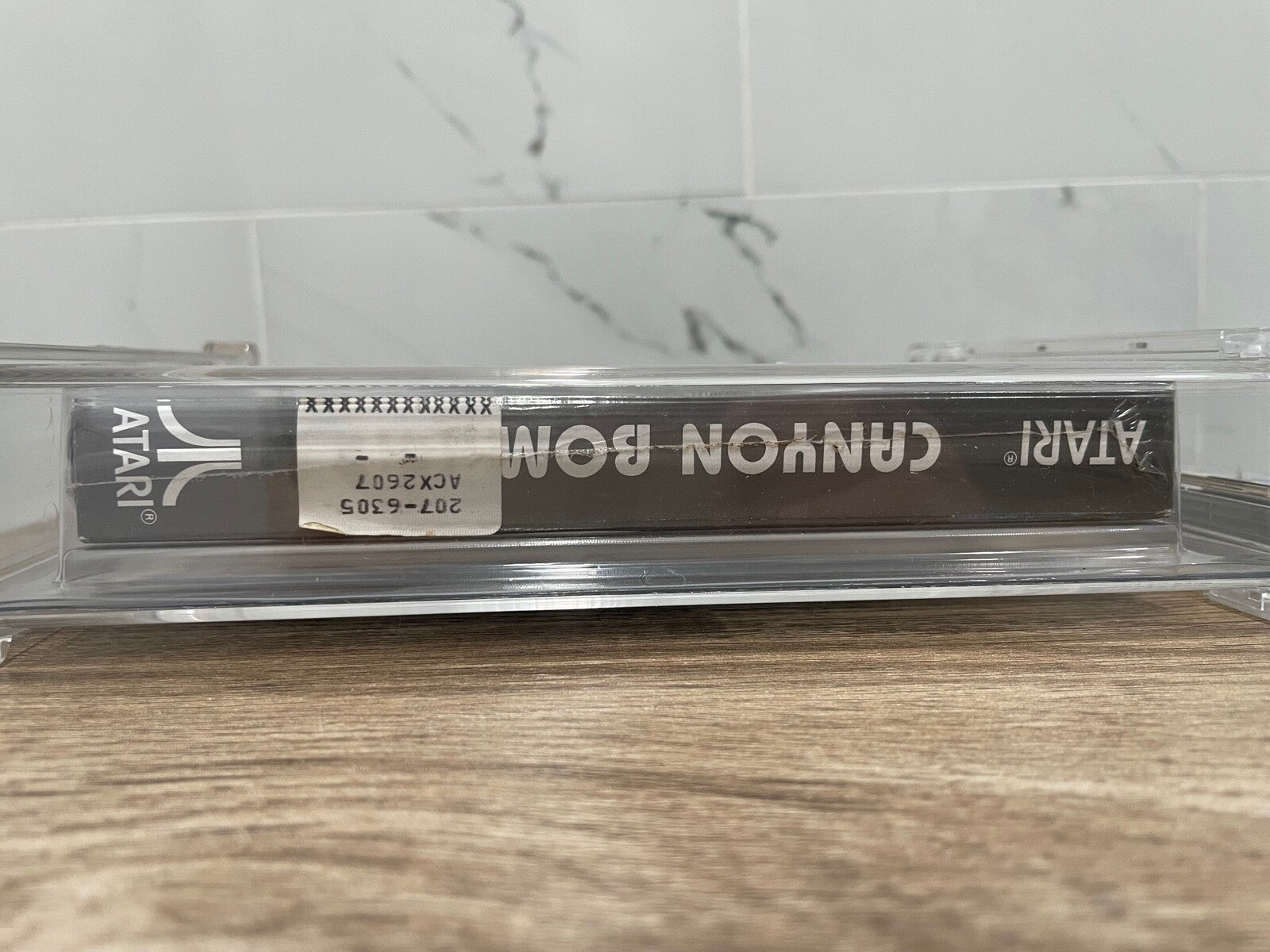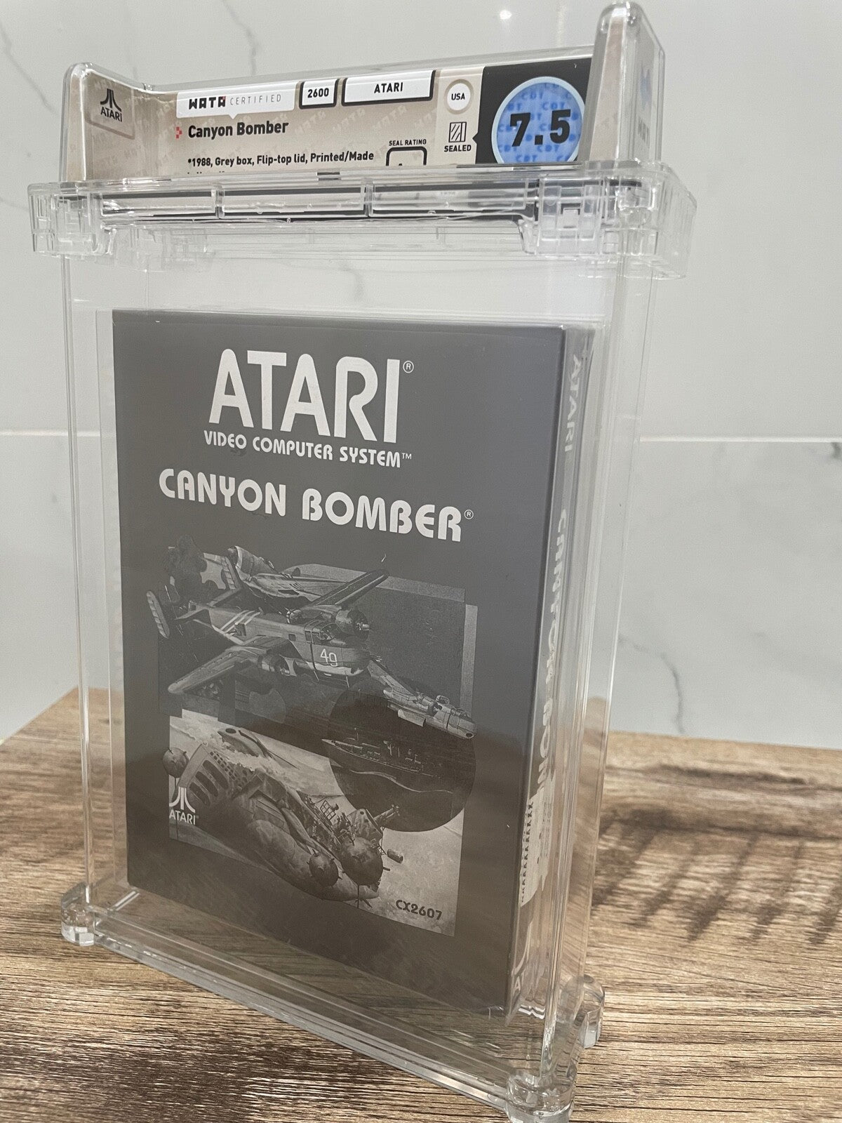Up for auction is an Unopened Canyon Bomber Atari Video Game. This game was for Atari and was released in 1988. This game has been graded a 7.5 by Wata. The seal received an A+ Grade. This is a tough to find game. This is a great chance to pick up an Atari classic!