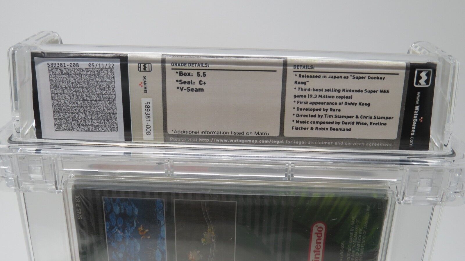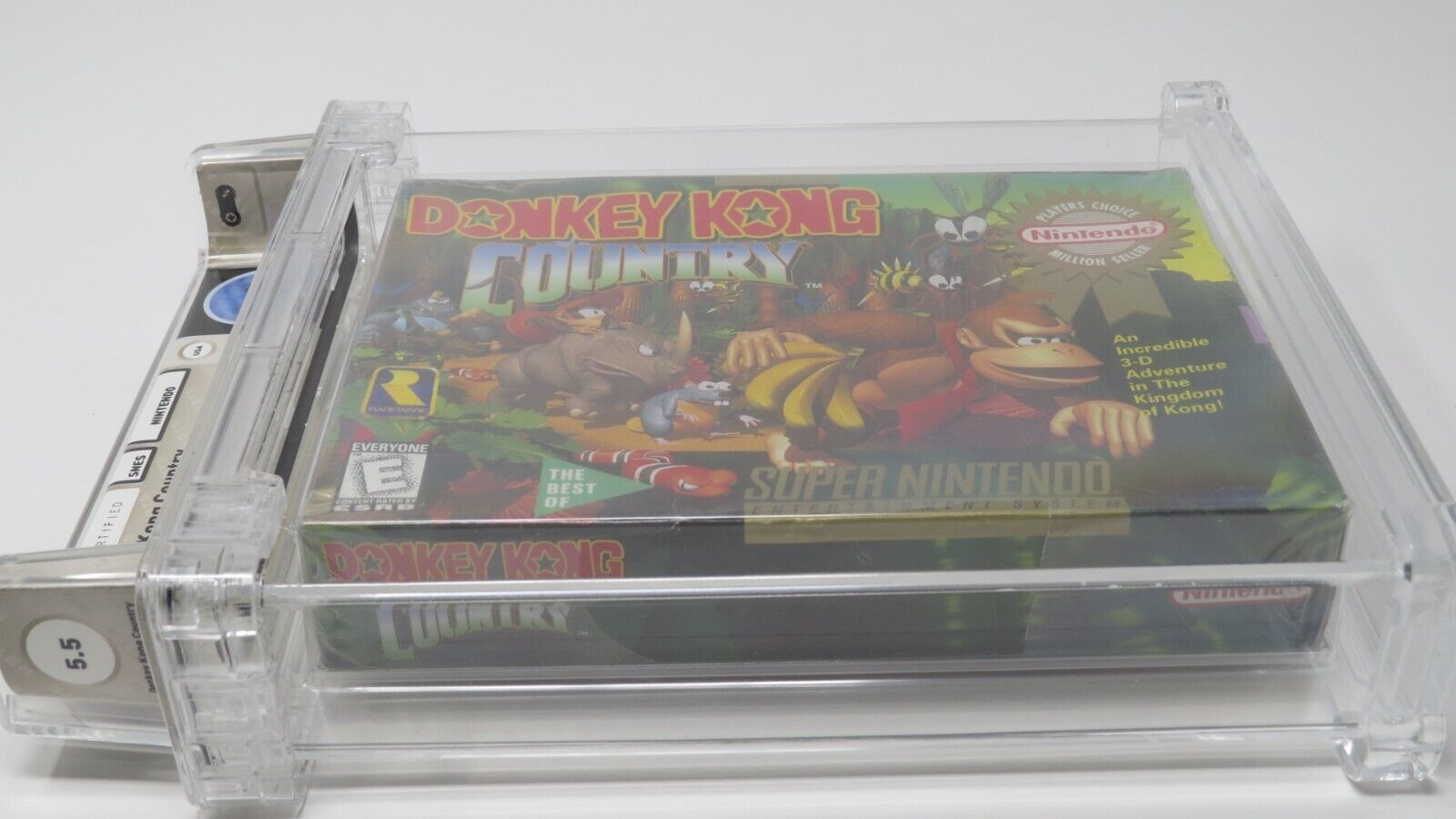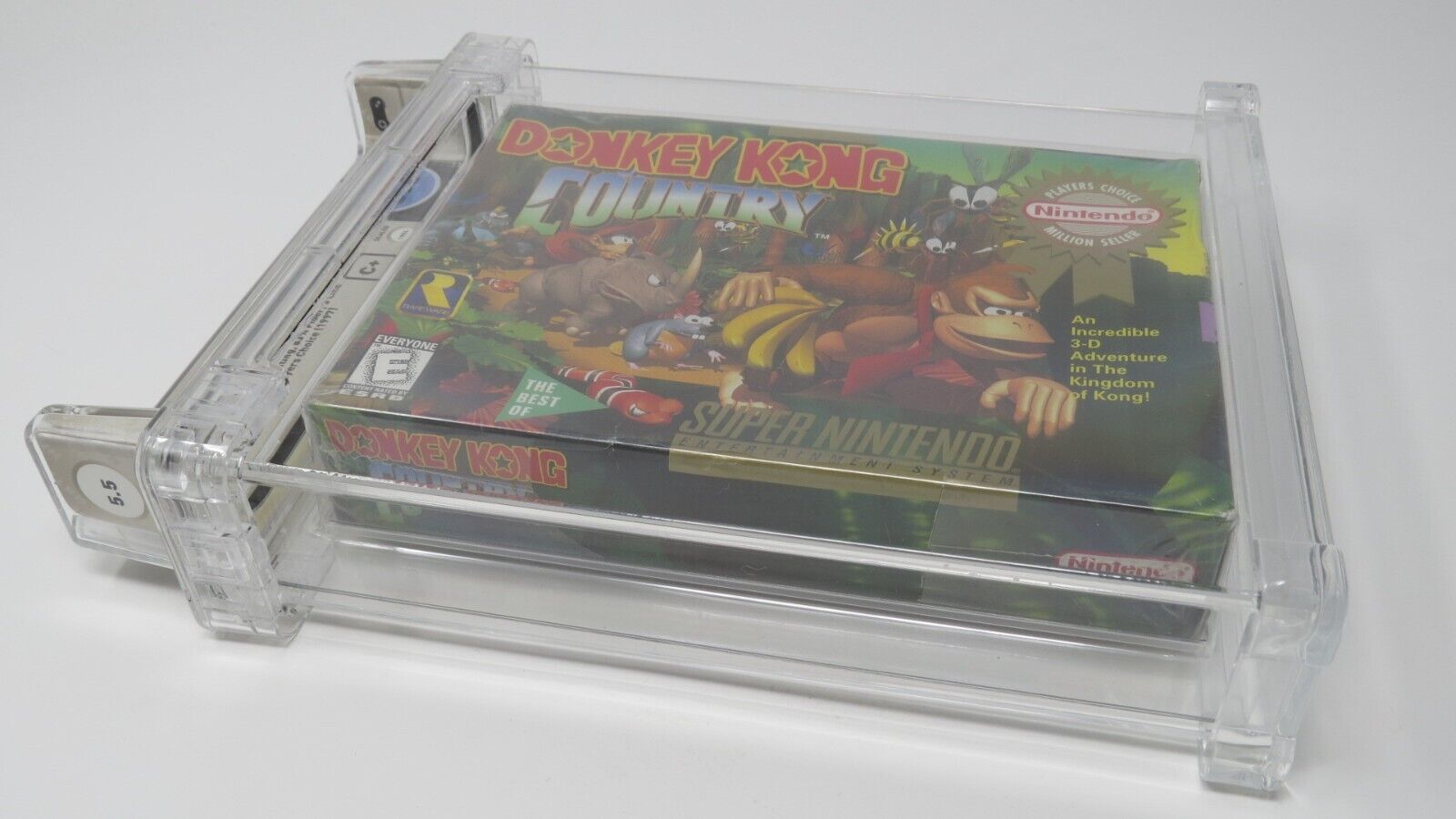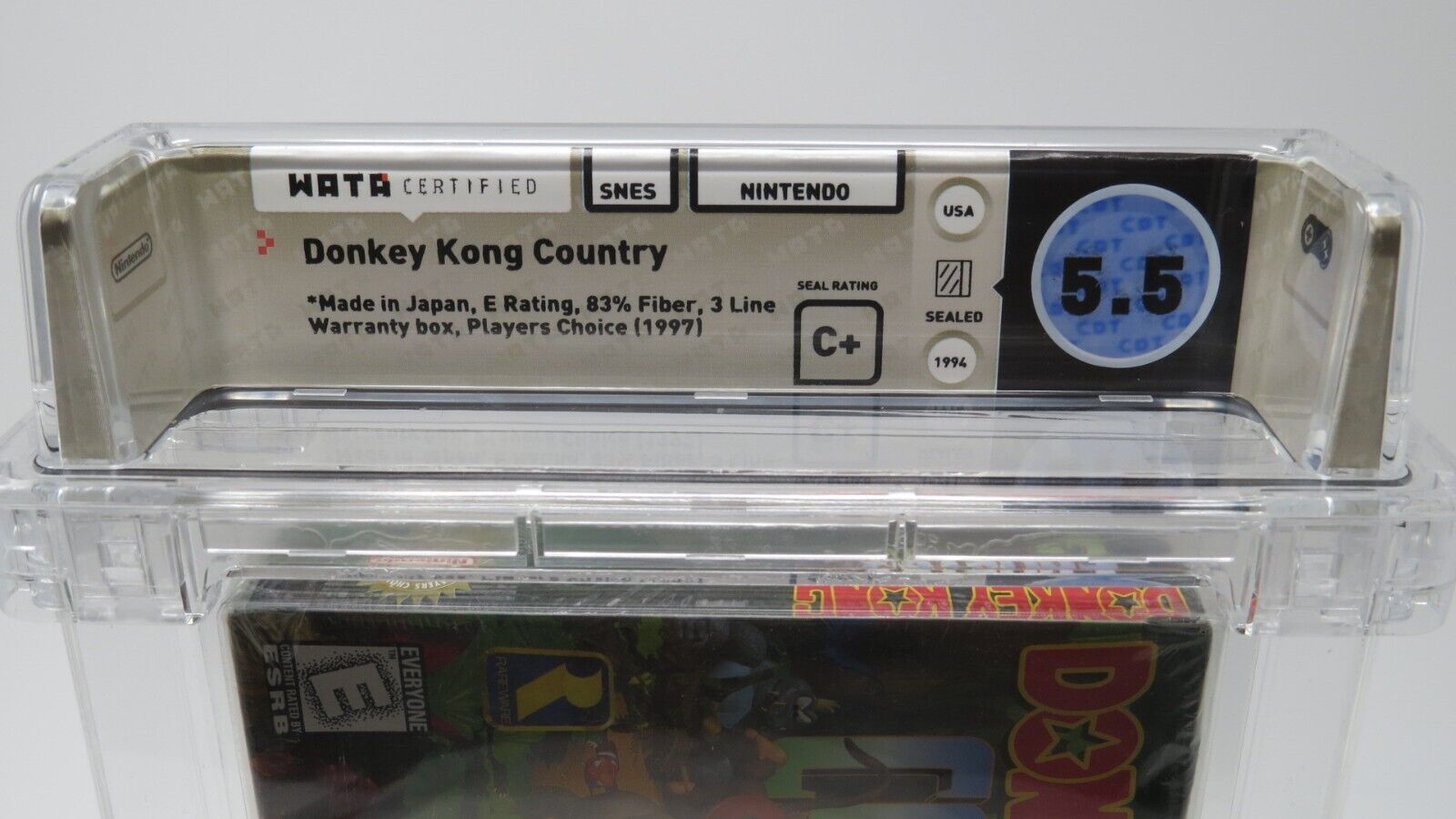 Up for auction is a Donkey Kong Country Super Nintendo Factory Sealed Video Game.  This game has been graded a 5.5 by Wata.   The seal on this game was graded a C+.  This is the "Players Choice" version of the game.  Donkey Kong Country was the third best selling Super Nintendo game of all time.  This is a great chance to pick up a classic!