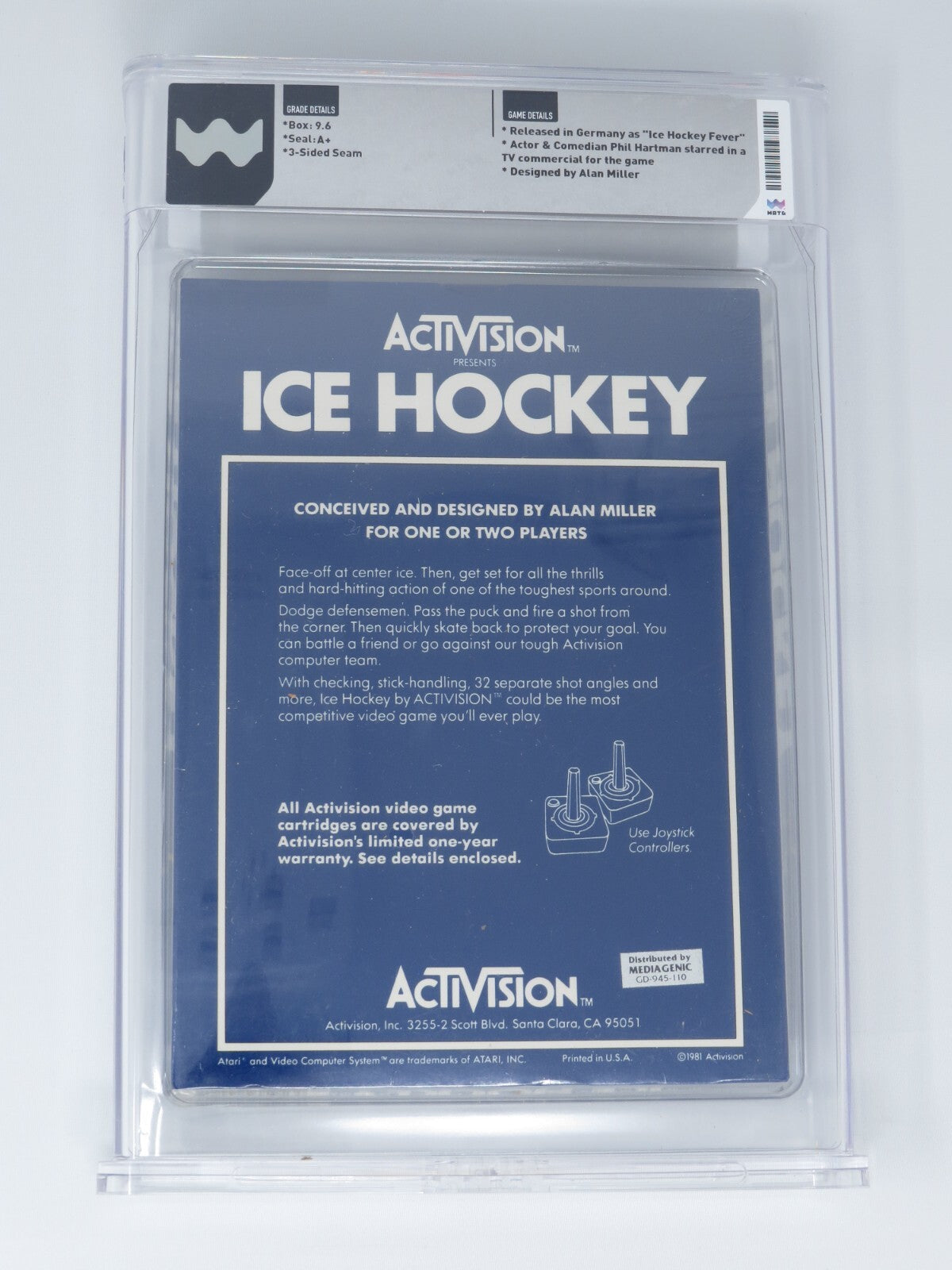 Up for auction is an Unopened Ice Hockey Atari Video Game. This game was for Atari and was released in 1981. This game has been graded a 9.6 by Wata. The seal received an A+ Grade. This is an always in demand Atari game in one of the highest grades you will see. This is a great chance to pick up an Atari classic!