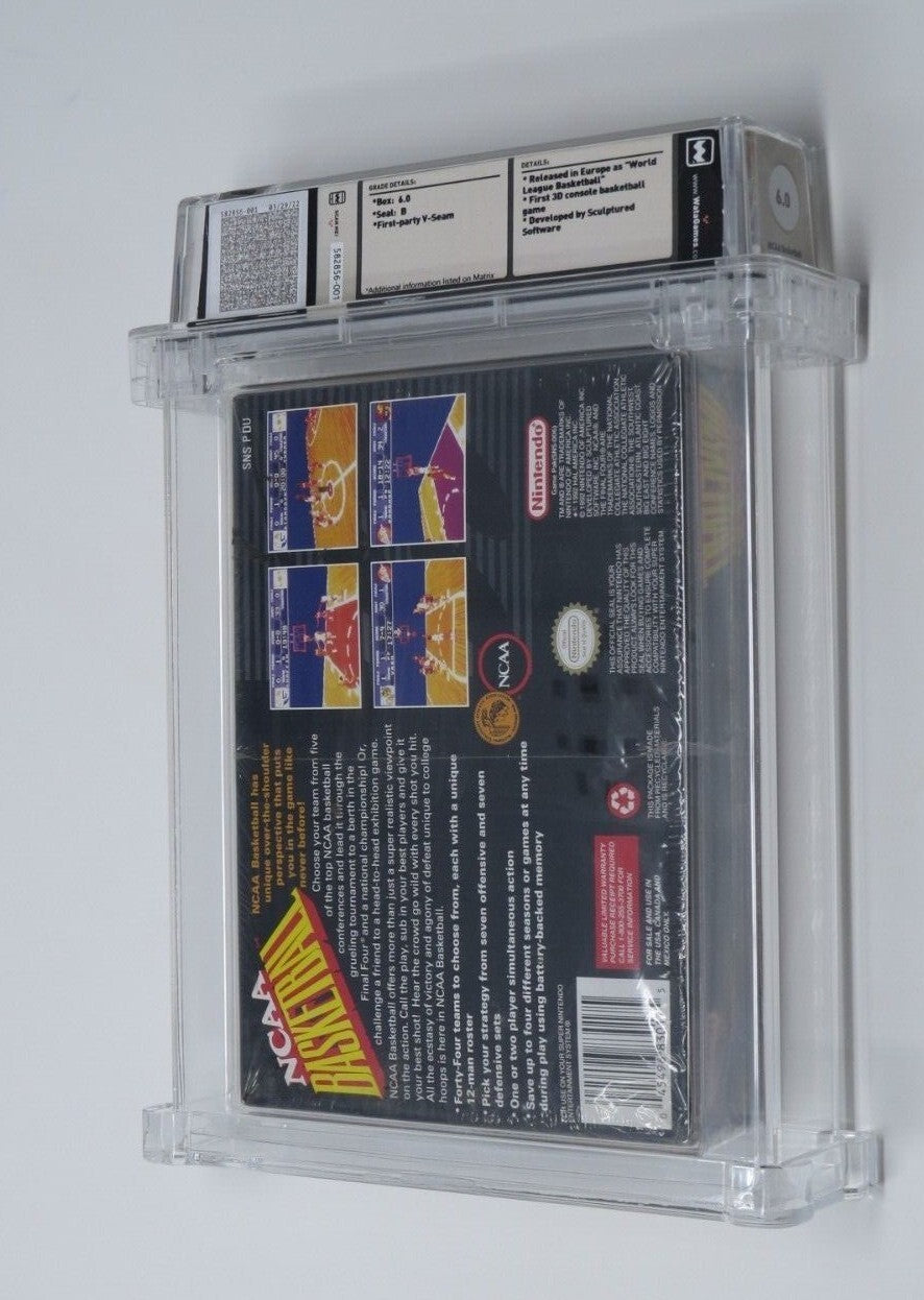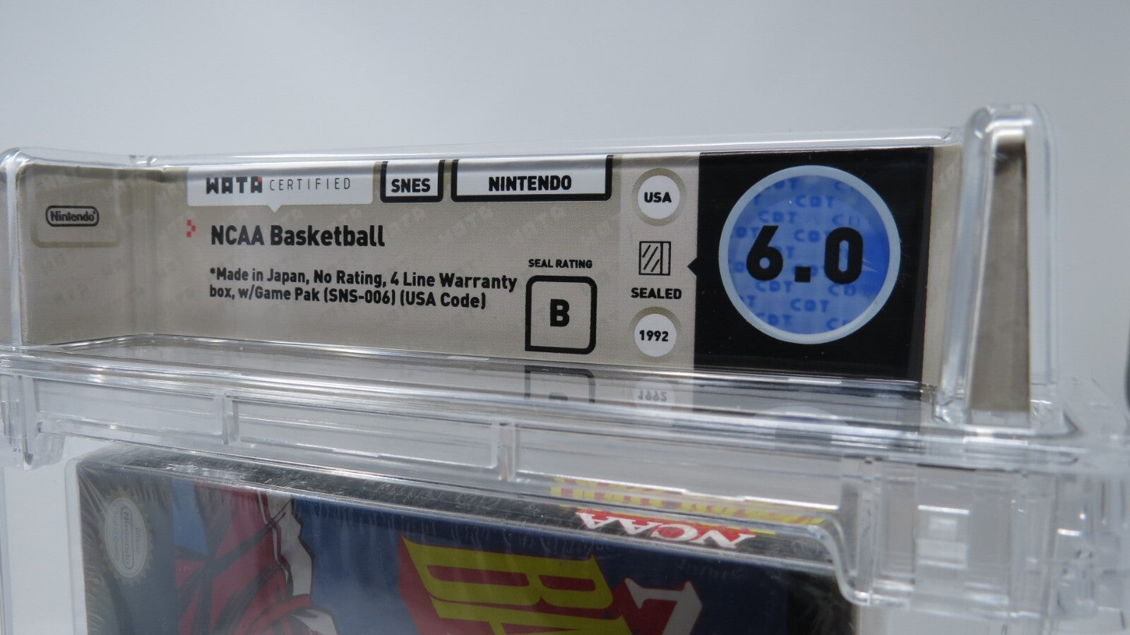 Up for auction is an Original NCAA Basketball Super Nintendo Sealed Video Game.  This sealed game has been graded a 6.0 by Wata.  The seal on the game was graded a B.  This was the first 3D console basketball game.  This is a great chance to pick up a classic game!