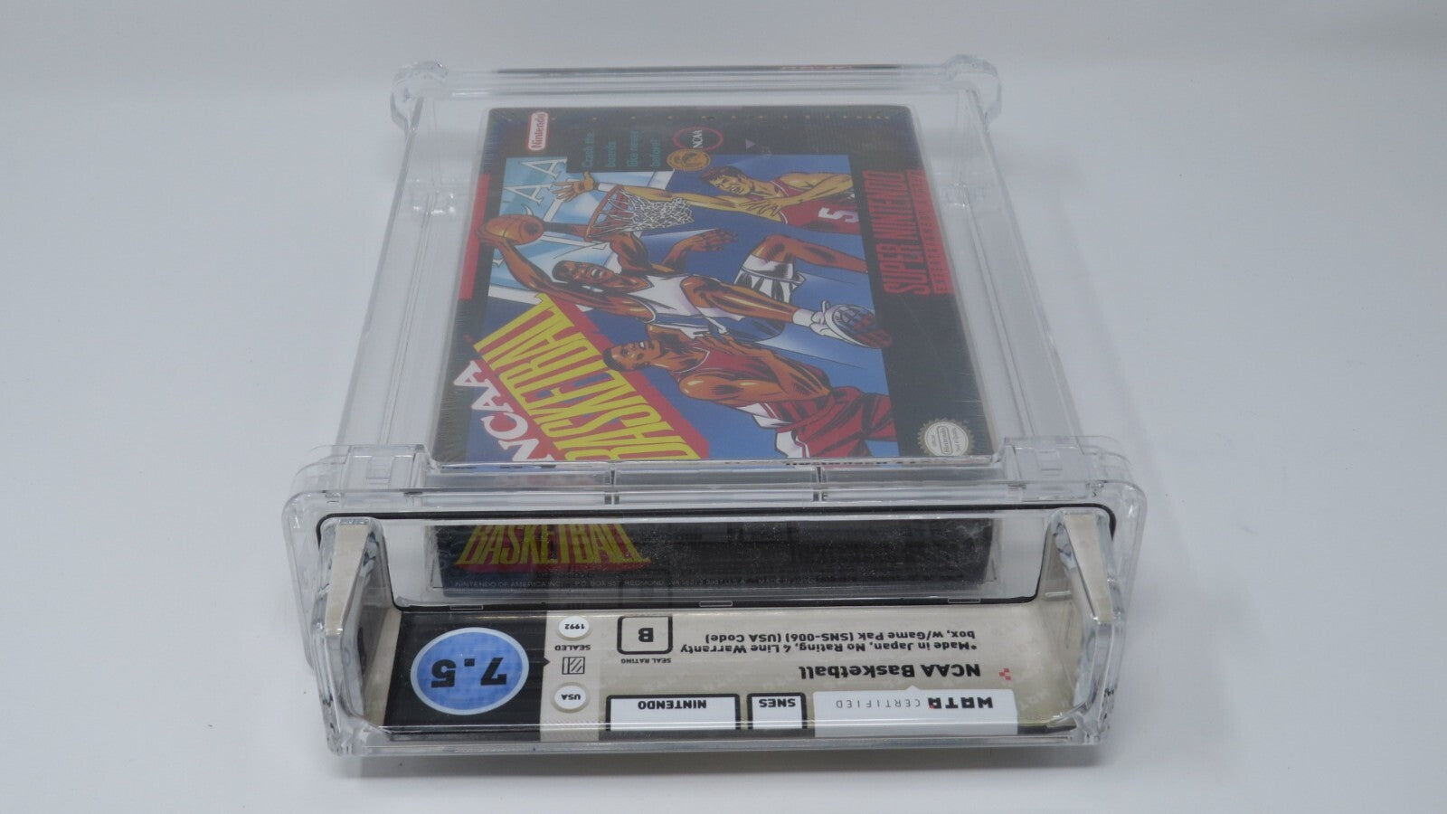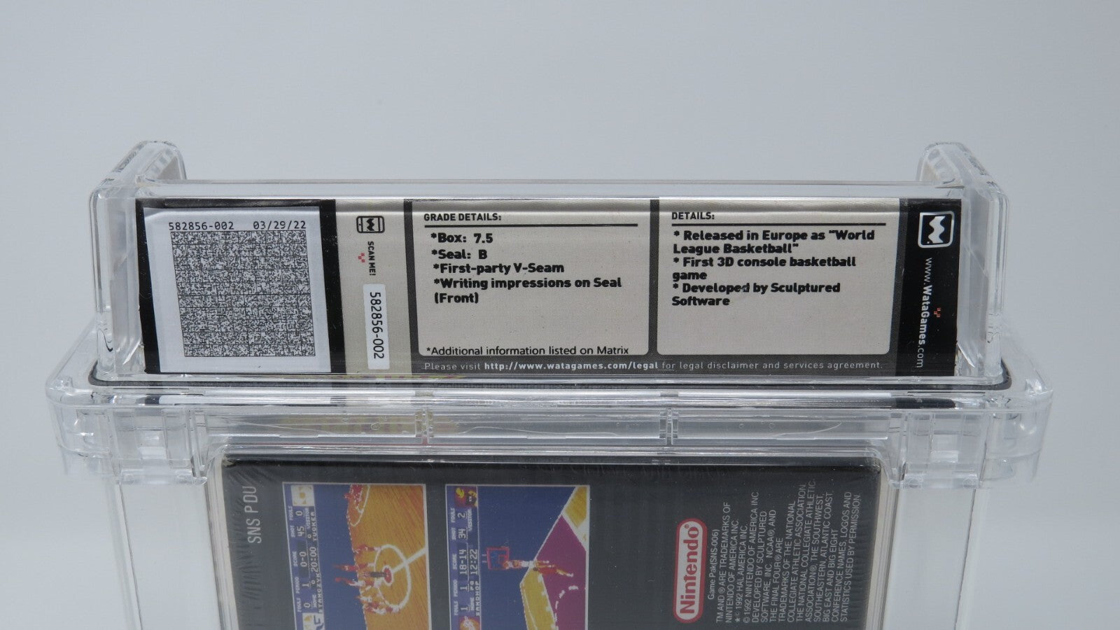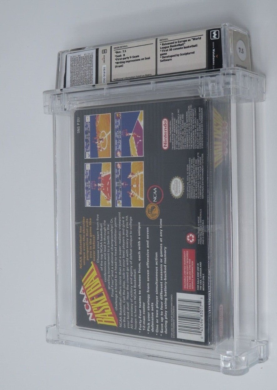 Up for auction is an Original NCAA Basketball Super Nintendo Sealed Video Game. This sealed game has been graded a 7.5 by Wata. The seal on the game was graded a B. This was the first 3D console basketball game. This is a great chance to pick up a classic game!