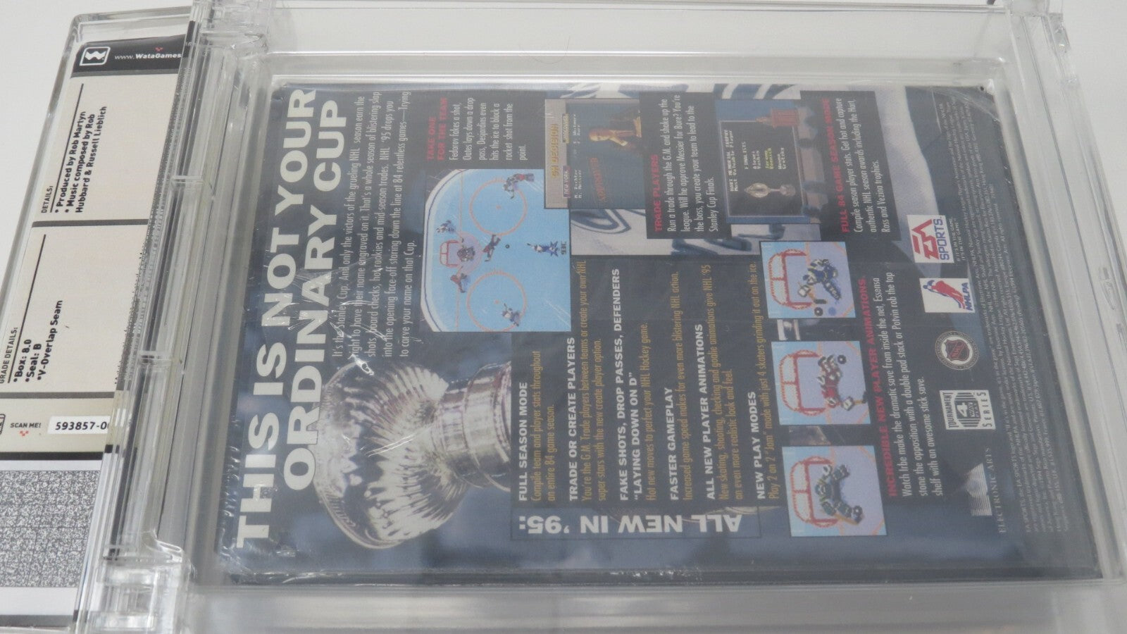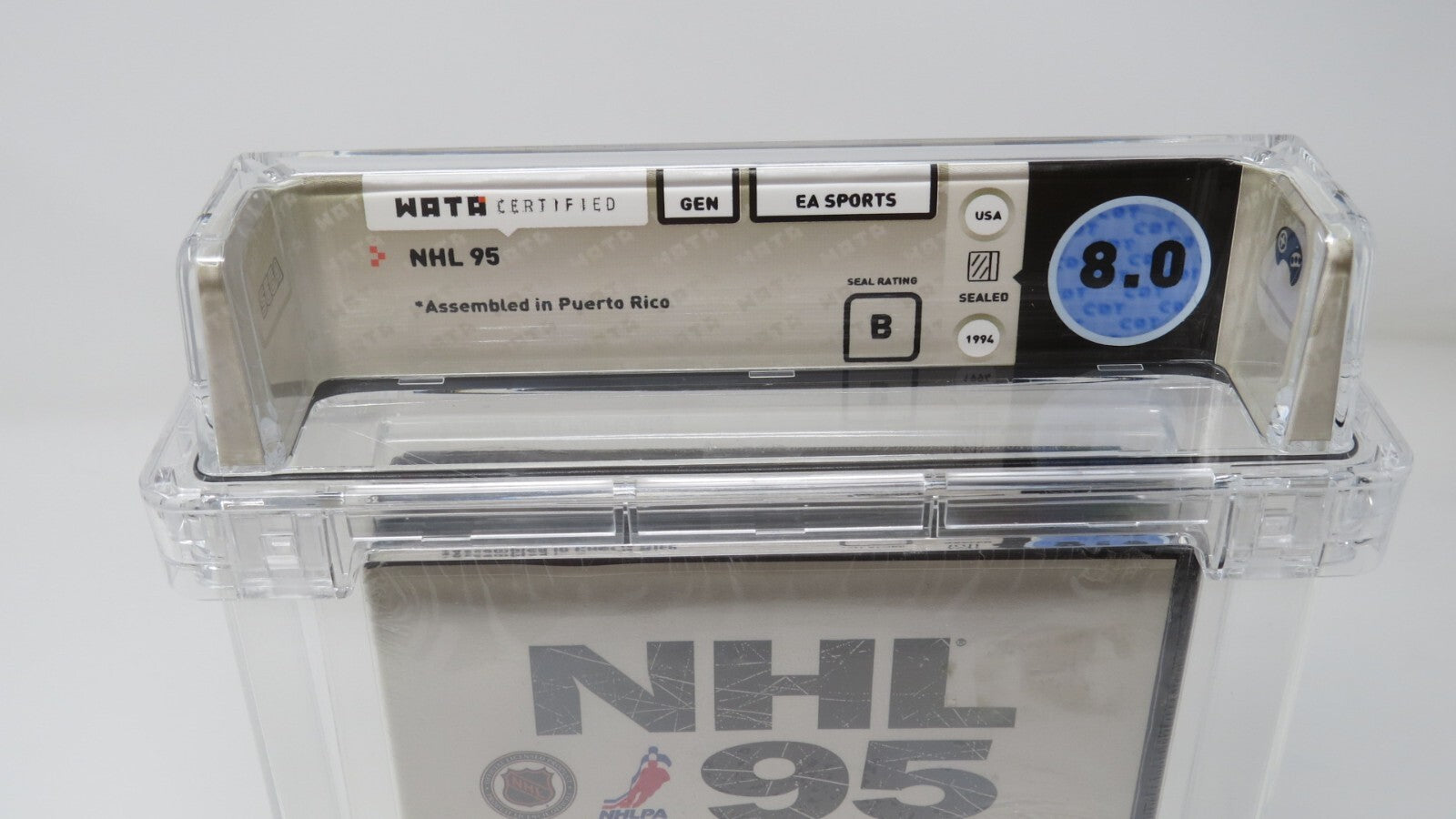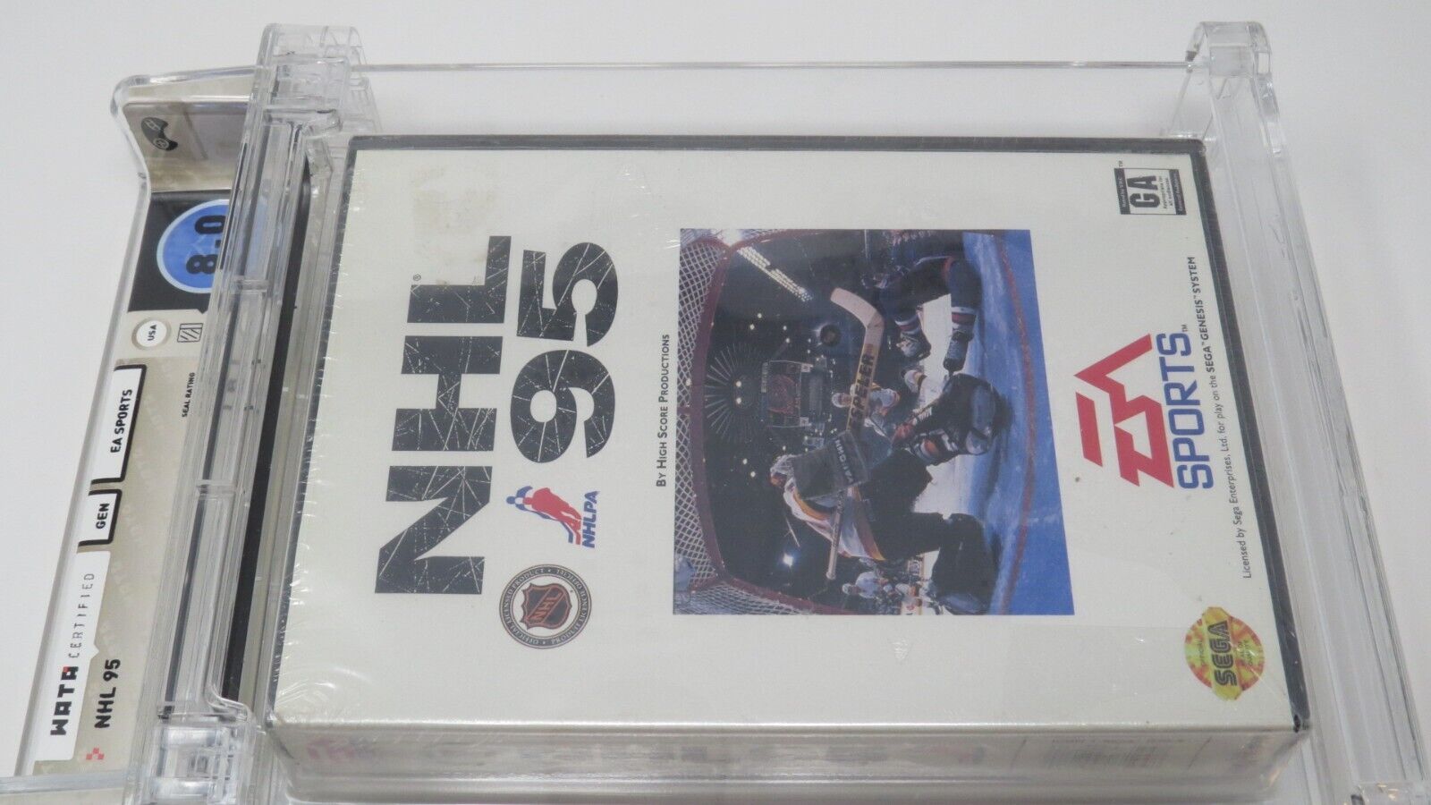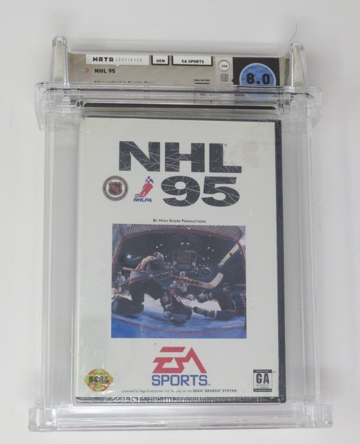 Up for auction is an Original NHL '95 Sega Genesis Sealed Video Game. This sealed game has been graded a 8.0 by Wata. The seal on the game was graded a B. NHL '95 is a harder to find sports title that is still factory sealed, very few graded ones have hit the market. This is a great chance to pick up a classic sports game!
