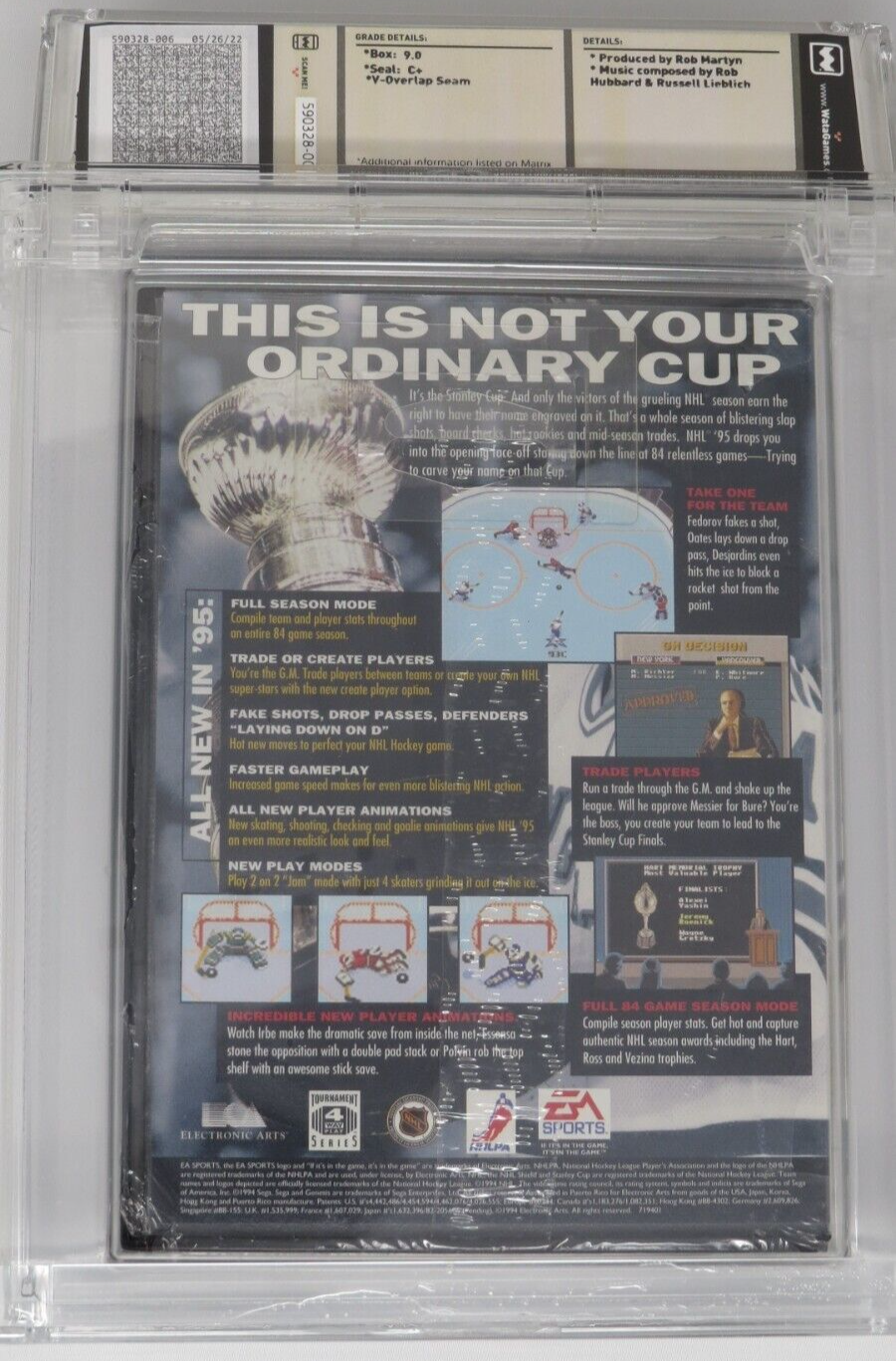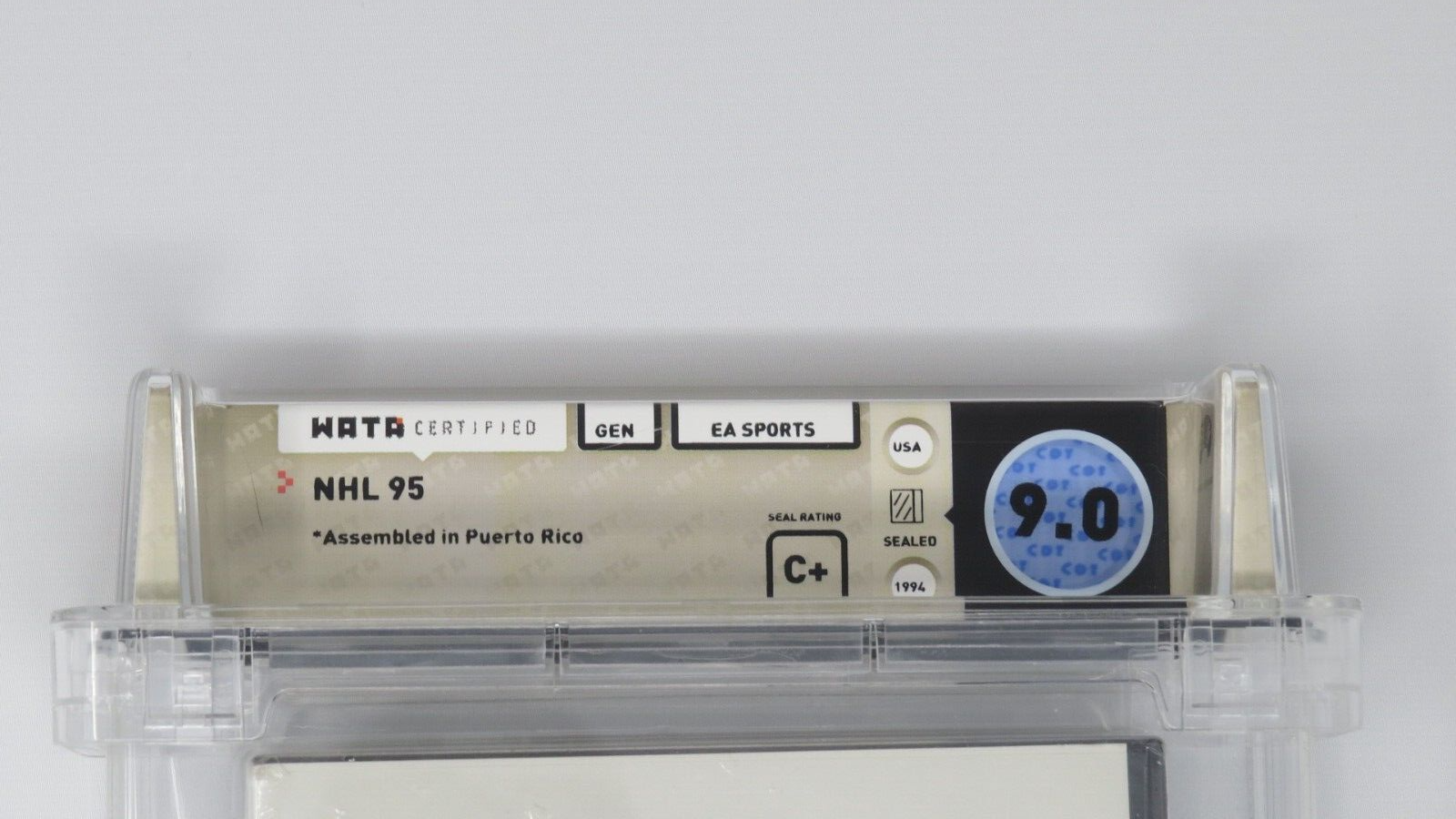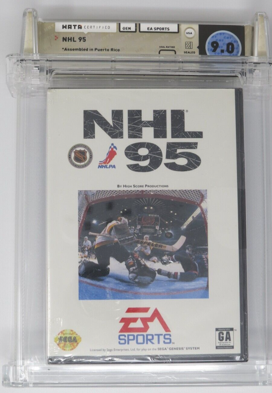 Up for auction is an Original NHL '95 Sega Genesis Sealed Video Game. This sealed game has been graded a 9.0 by Wata. The seal on the game was graded a C+. NHL '95 is a harder to find sports title that is still factory sealed, very few graded ones have hit the market. This is a great chance to pick up a classic sports game!