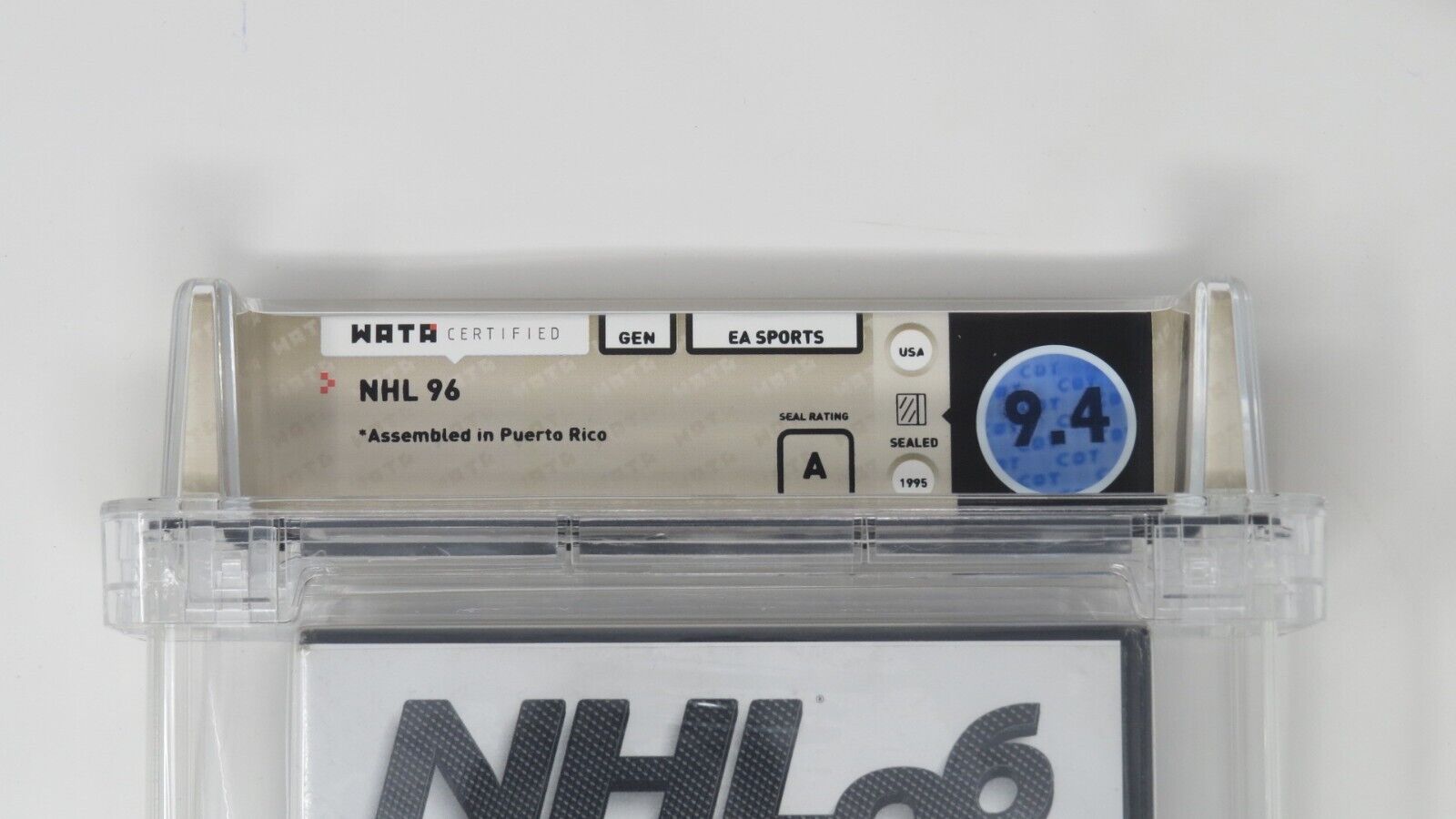 Up for auction is an Original NHL '96 Sega Genesis Sealed Video Game.  This sealed game has been graded a 9.4 by Wata.  The seal on the game was graded an A.  This is a great chance to pick up a classic sports game!