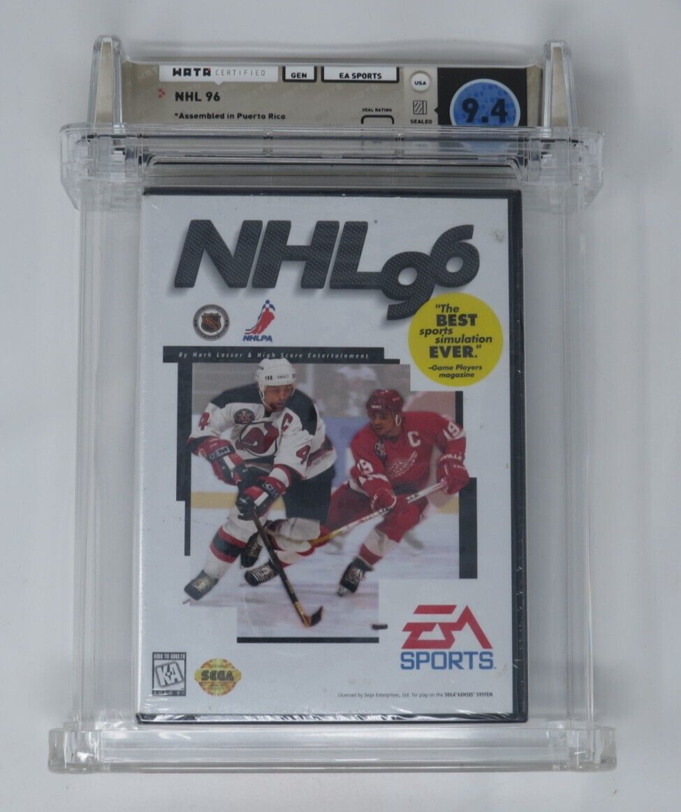 Up for auction is an Original NHL '96 Sega Genesis Sealed Video Game.  This sealed game has been graded a 9.4 by Wata.  The seal on the game was graded an A.  This is a great chance to pick up a classic sports game!