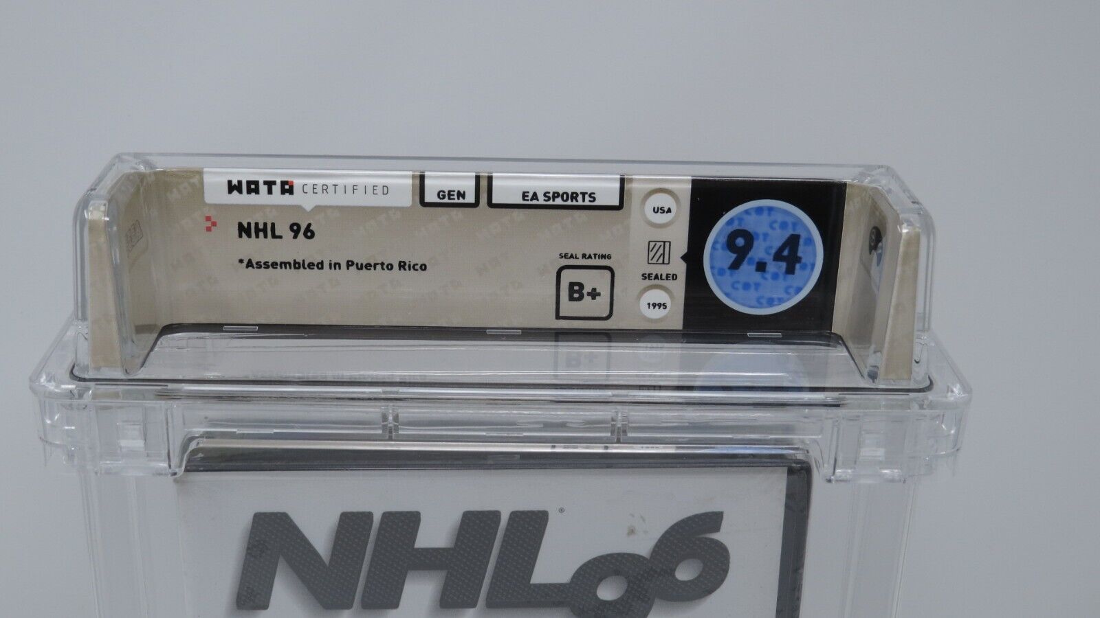Up for auction is an Original NHL '96 Sega Genesis Sealed Video Game.  This sealed game has been graded a 9.4 by Wata.  The seal on the game was graded a B+.  This game has Wata's Deep Badge which is only available for games graded a 9.0 or above.  This is a great chance to pick up a classic sports game!