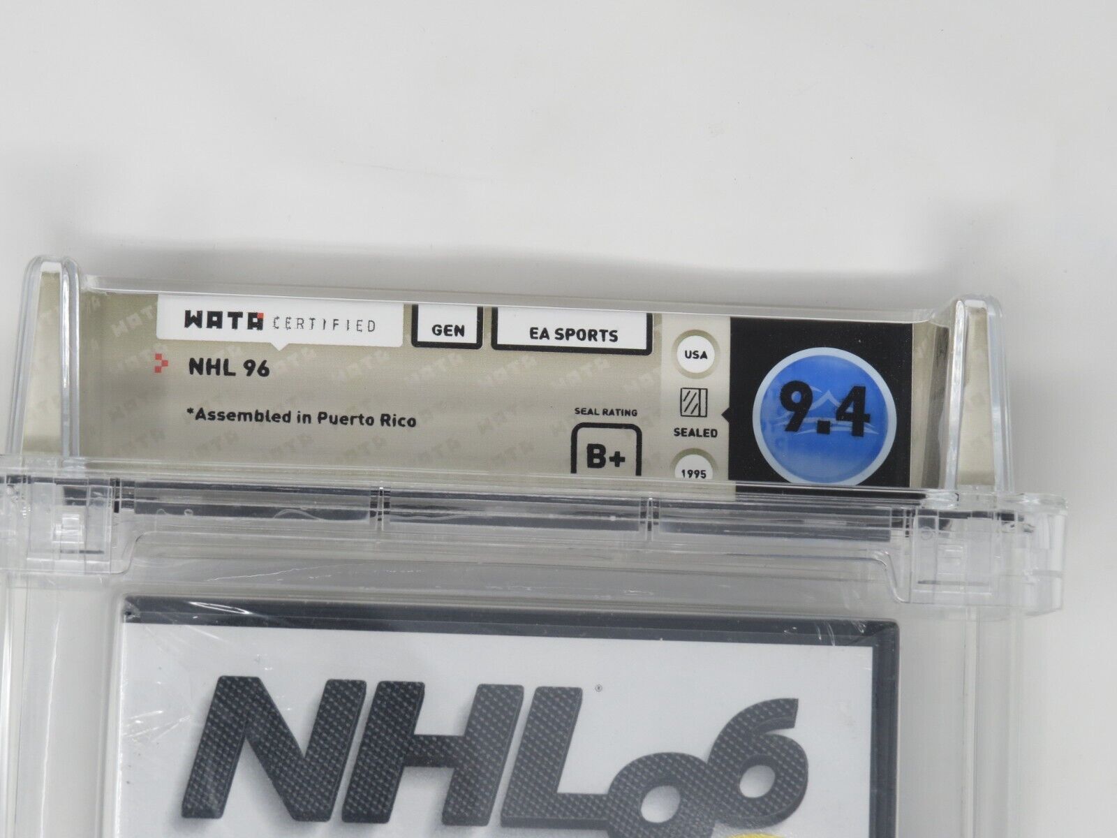 Up for auction is an Original NHL '96 Sega Genesis Sealed Video Game.  This sealed game has been graded a 9.4 by Wata.  The seal on the game was graded a B+.  This game has Wata's Deep Badge which is only available for games graded a 9.0 or above.  This is a great chance to pick up a classic sports game!