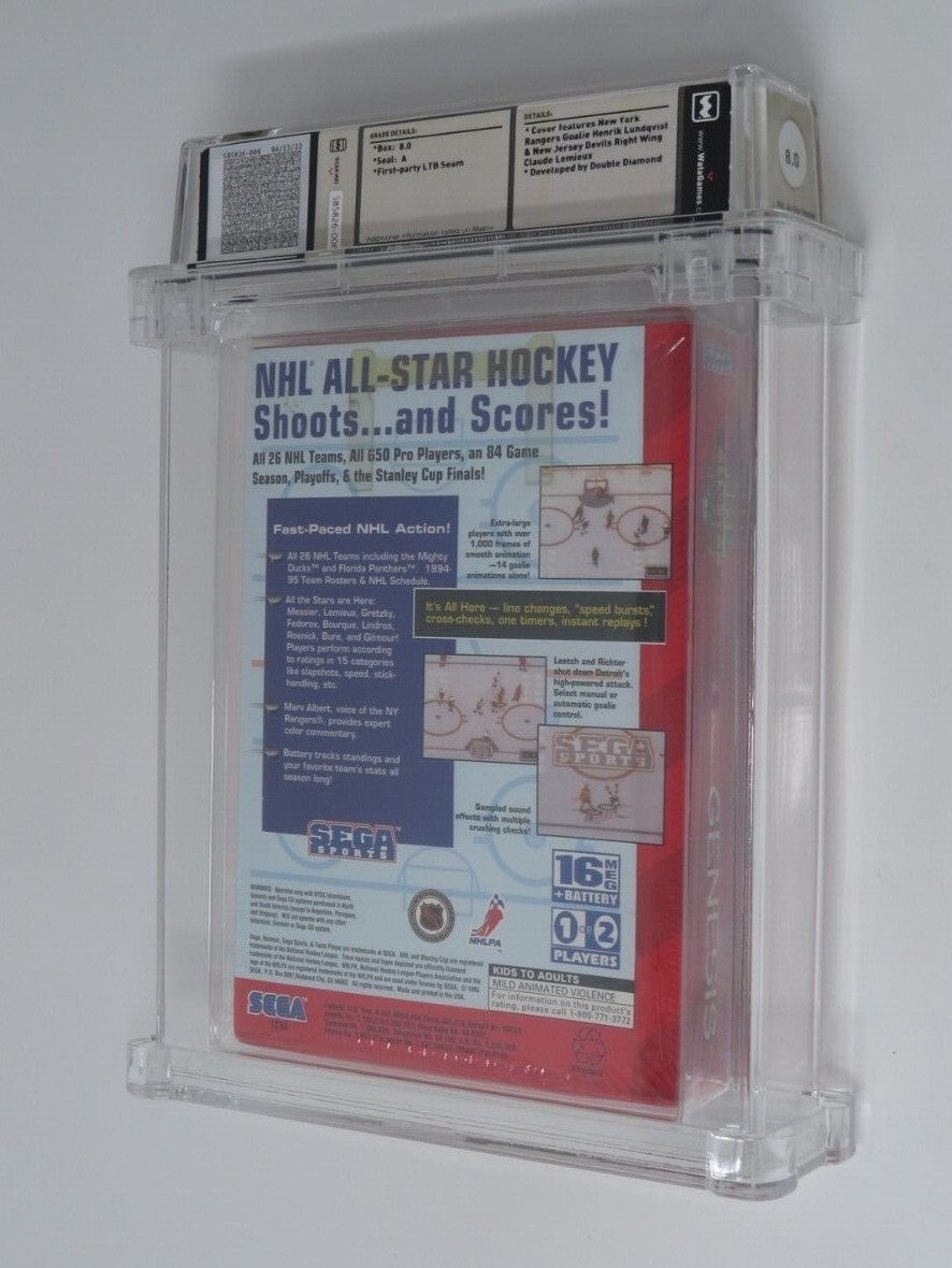 Up for auction is an Original NHL All Star Hockey '95 Sega Genesis Sealed Video Game.  This sealed game has been graded a 8.0 by Wata.  The seal on the game was graded an A.  This is a great chance to pick up a classic sports game!