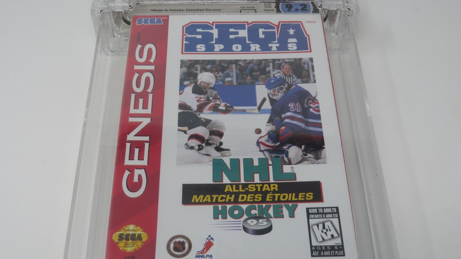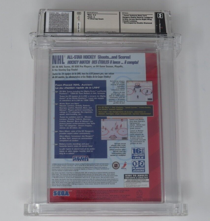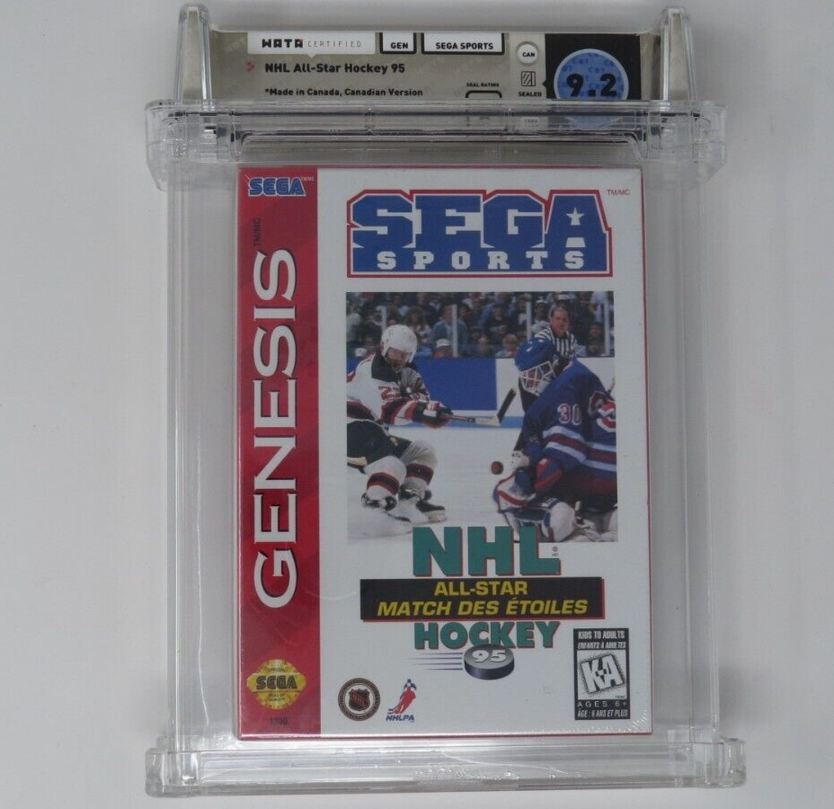 Up for auction is an Original NHL All Star Hockey '95 Sega Genesis Sealed Video Game. This sealed game has been graded a 9.2 by Wata. The seal on the game was graded an A. This is a great chance to pick up a classic sports game!