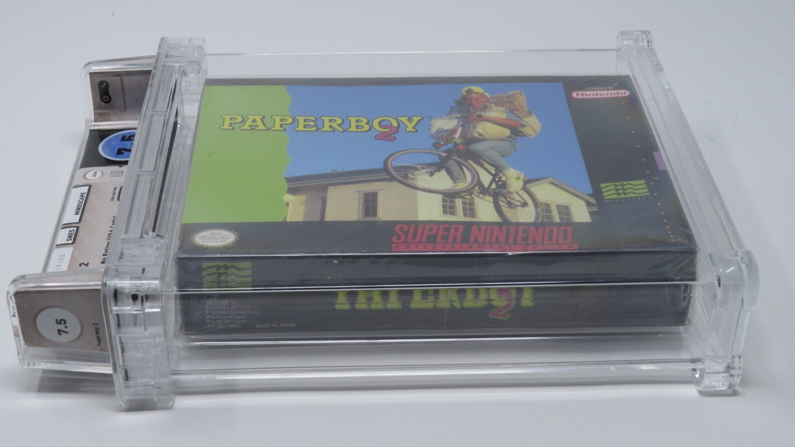 Up for auction is an Original Paperboy 2 Sealed Super Nintendo Video Game. This sealed game has been graded a 7.5 by Wata. The seal on the game was graded an A. This game was produced by Mindscape and was released in 1991. This is a great chance to pick up a classic game at a great price!