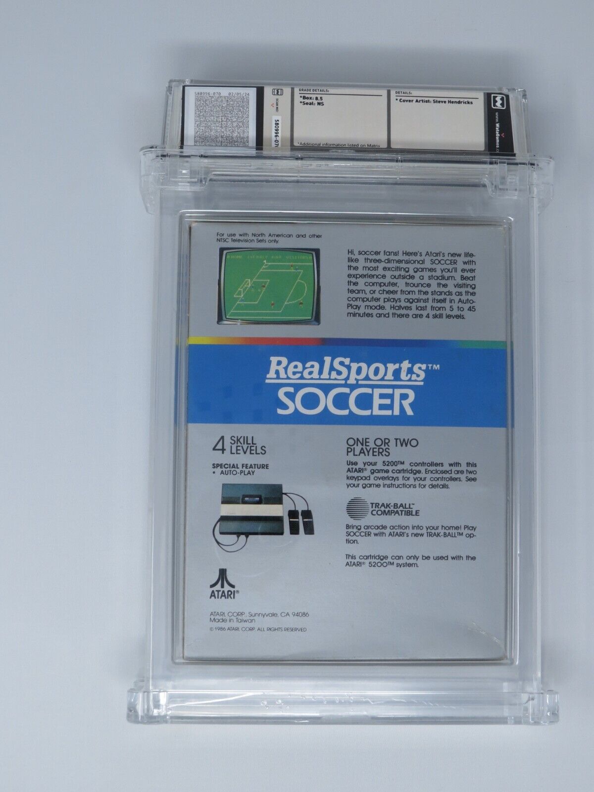 Up for auction is an Unopened RealSports Soccer Atari 5200 Video Game. This game was for Atari and was released in 1982. This game has been graded a 8.5 by Wata. This is a tough to find game. This is a great chance to pick up an Atari classic!