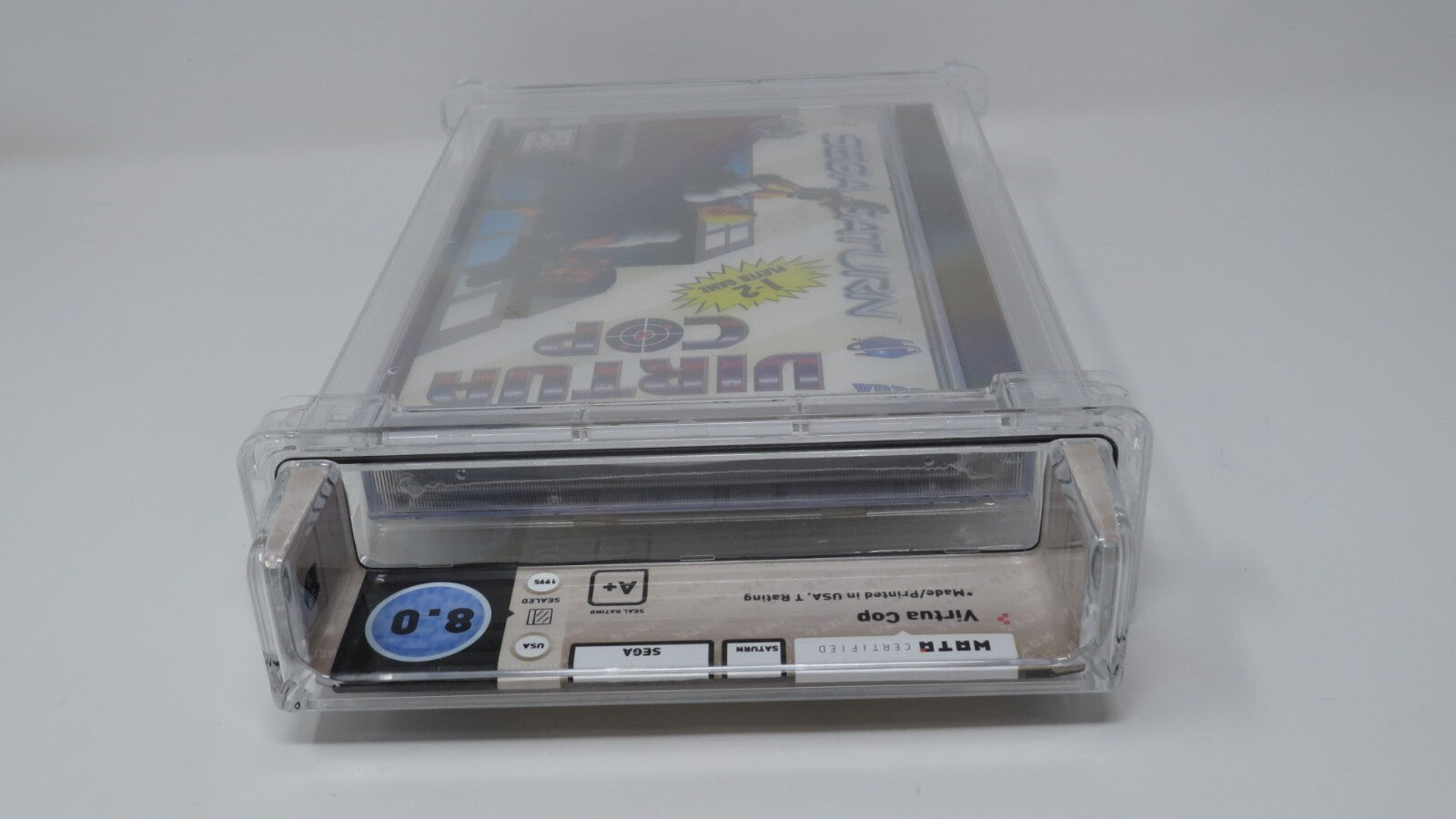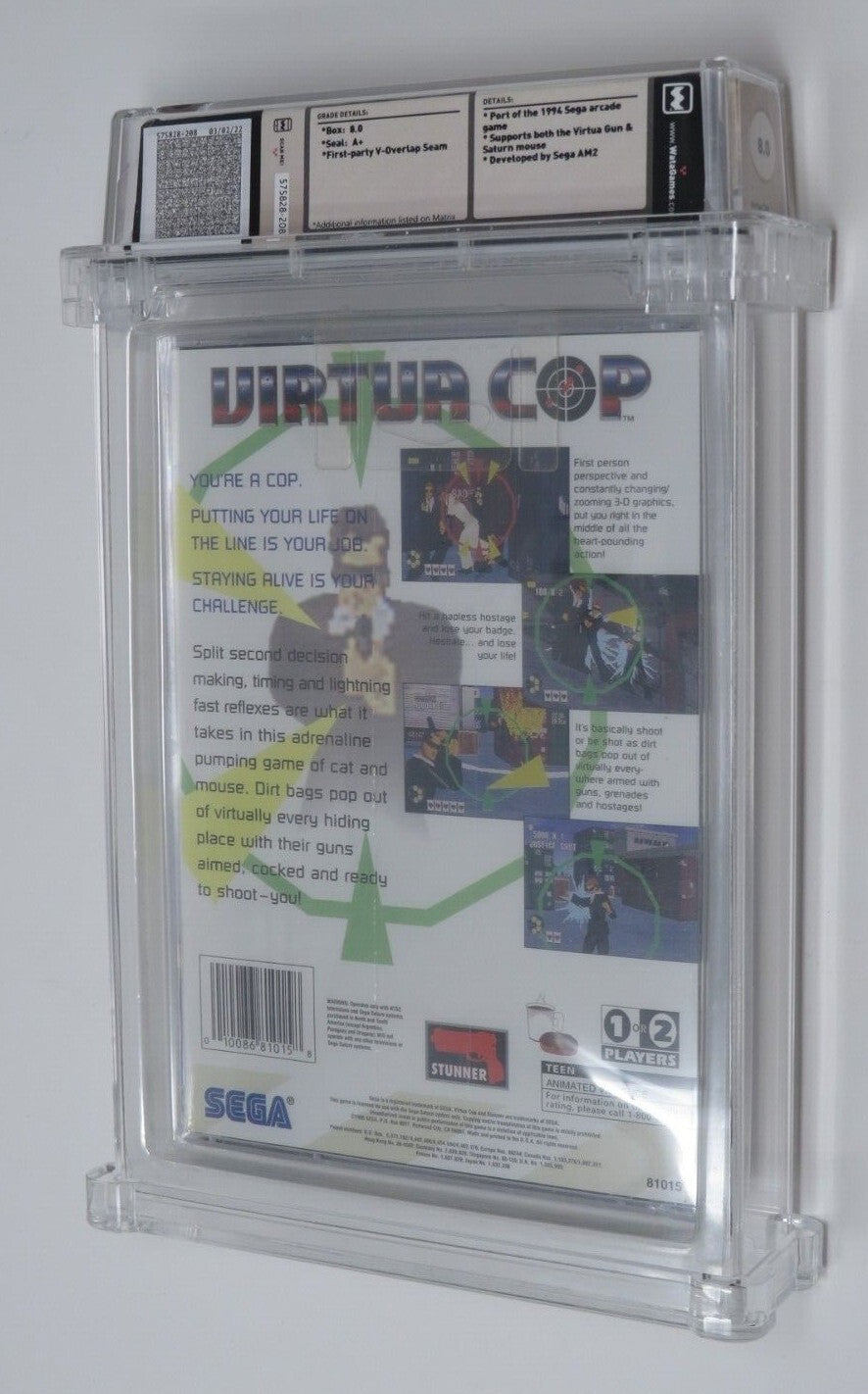Up for auction is an Original Virtua Cop Sega Saturn Sealed Video Game. This sealed game has been graded a 8.0 by Wata. The seal on the game was graded an A+. This is one of the most desirable sealed video games for the Sega Saturn platform. This is a great chance to pick up a classic Sega game!