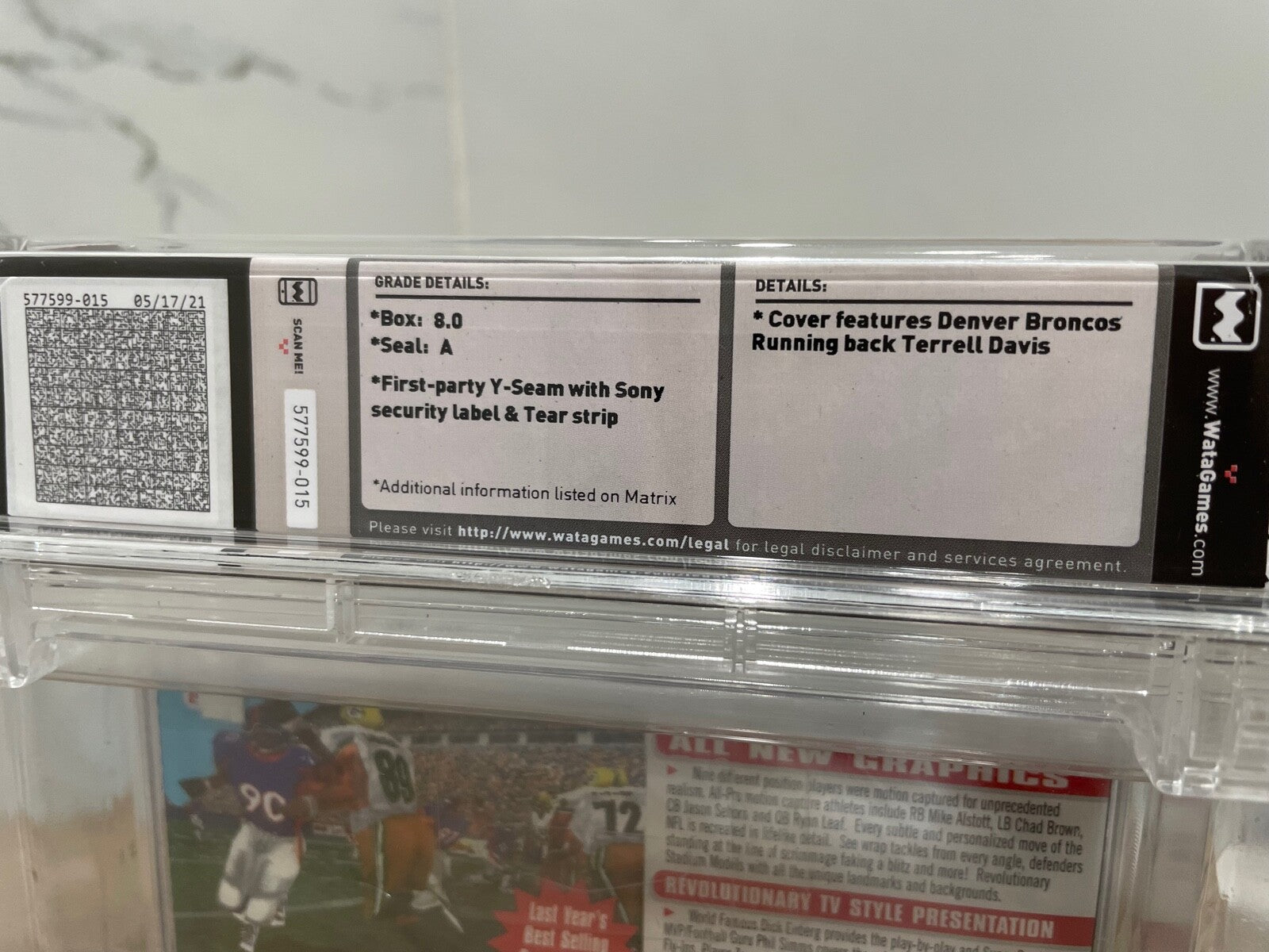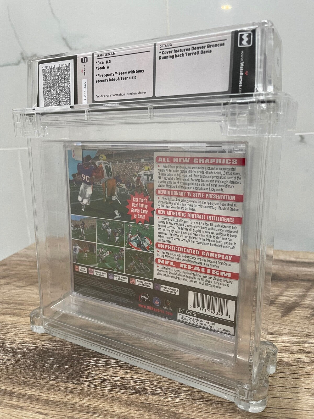 Up for auction is an Original NFL GameDay '99 Sony Playstation Sealed Video Game. This sealed game has been graded a 8.0 by Wata. The seal on the game was graded an A. This is a great chance to pick up a classic Playstation game!