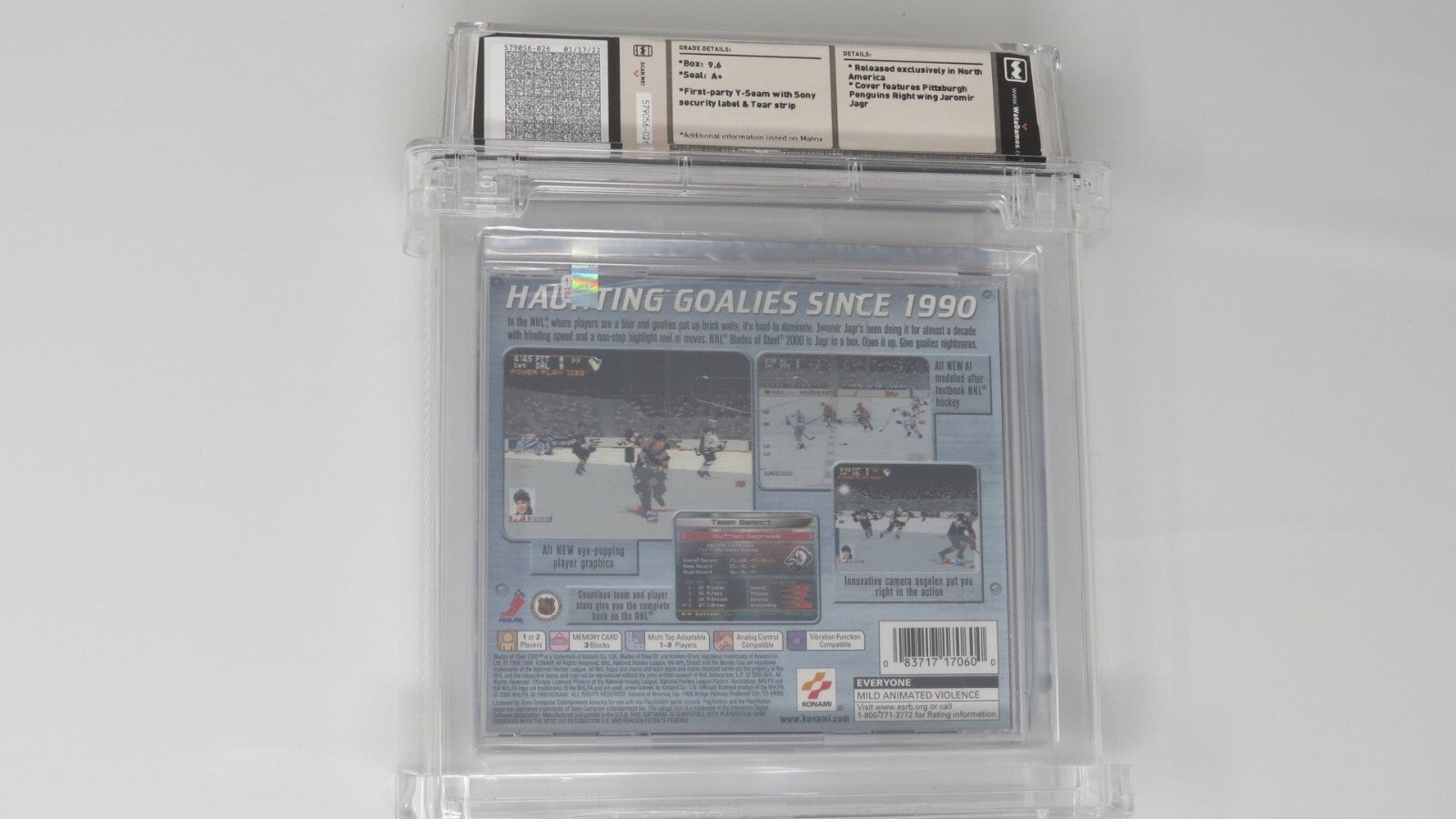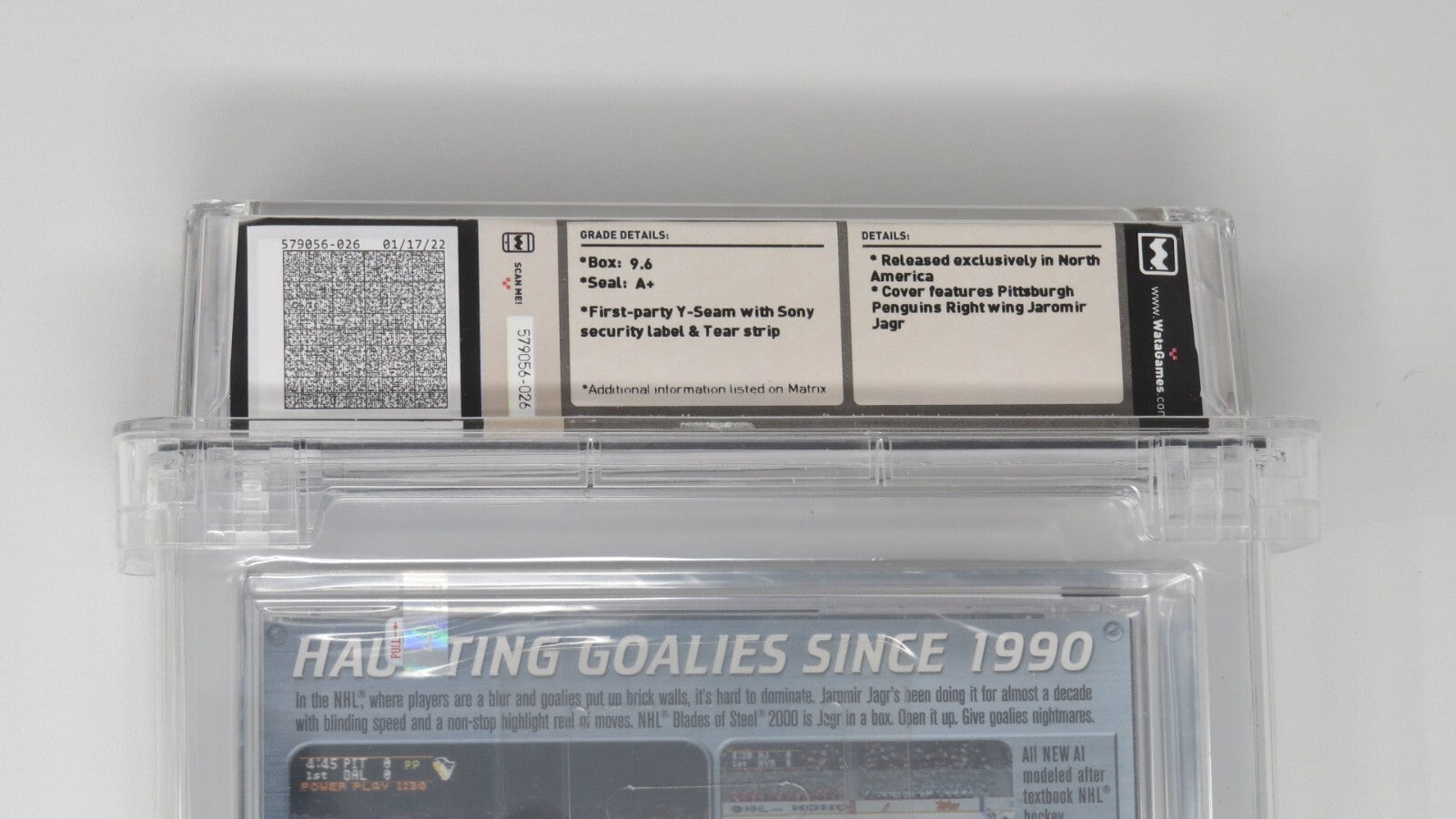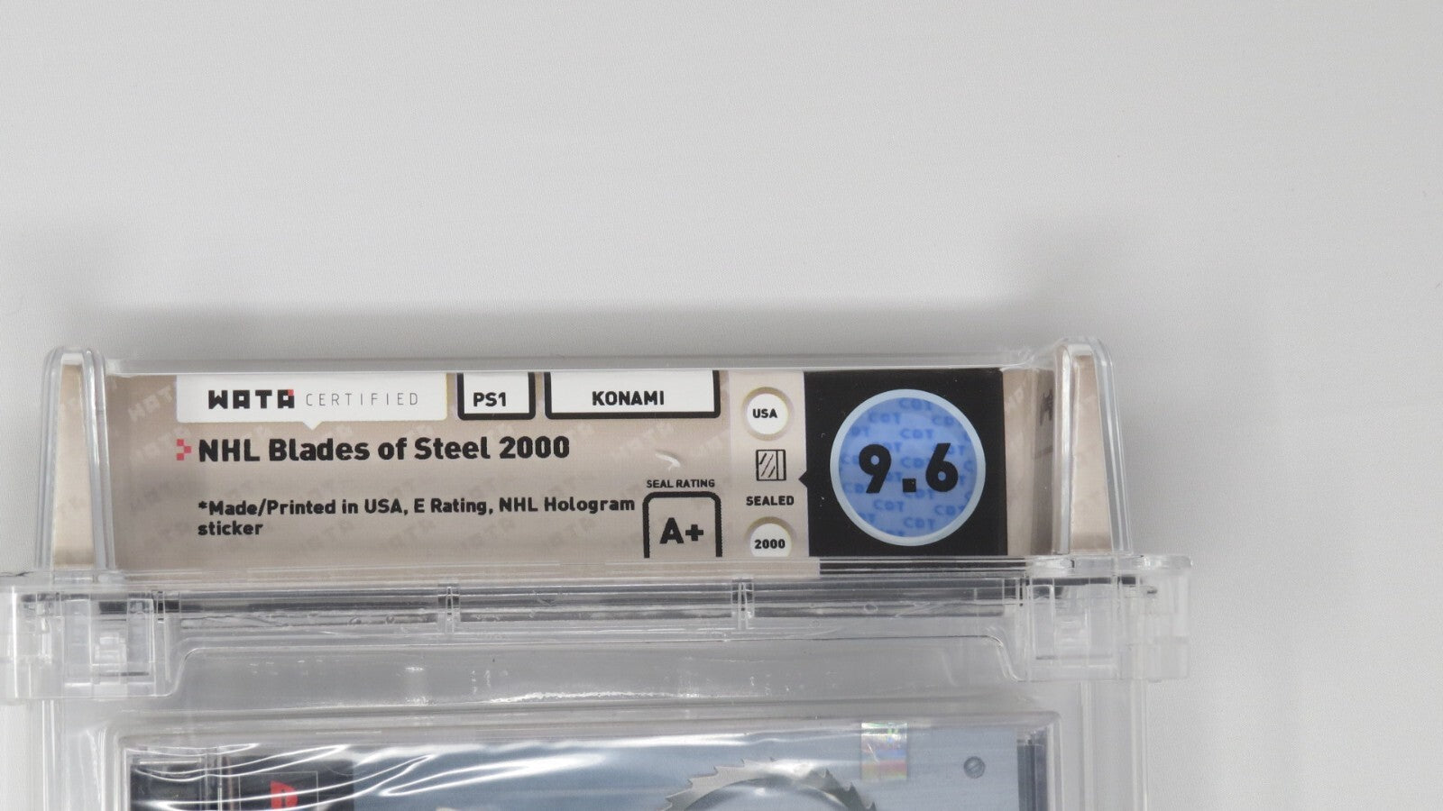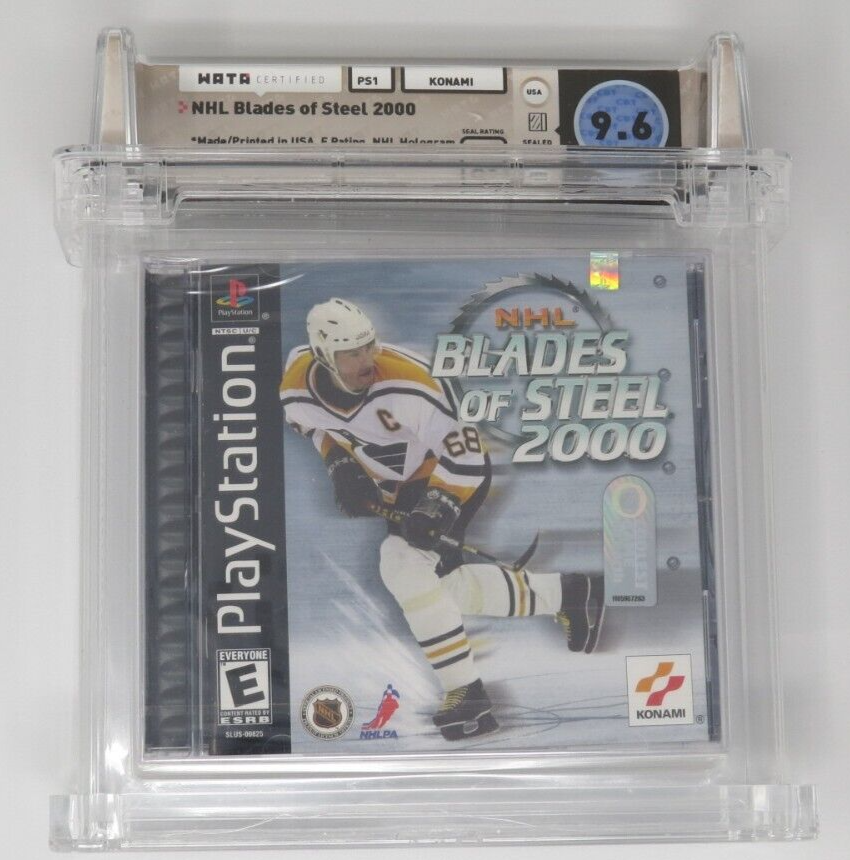 Up for auction is an Original NHL Blades of Steel 2000 Sony Playstation Sealed Video Game. This sealed game has been graded a 9.6 by Wata. The seal on the game was graded an A+. This is a great chance to pick up a classic Playstation game!