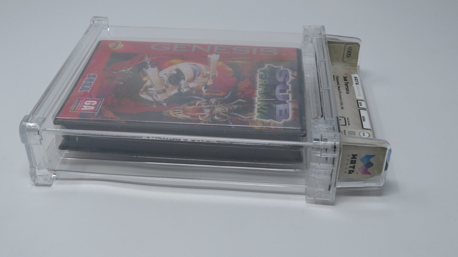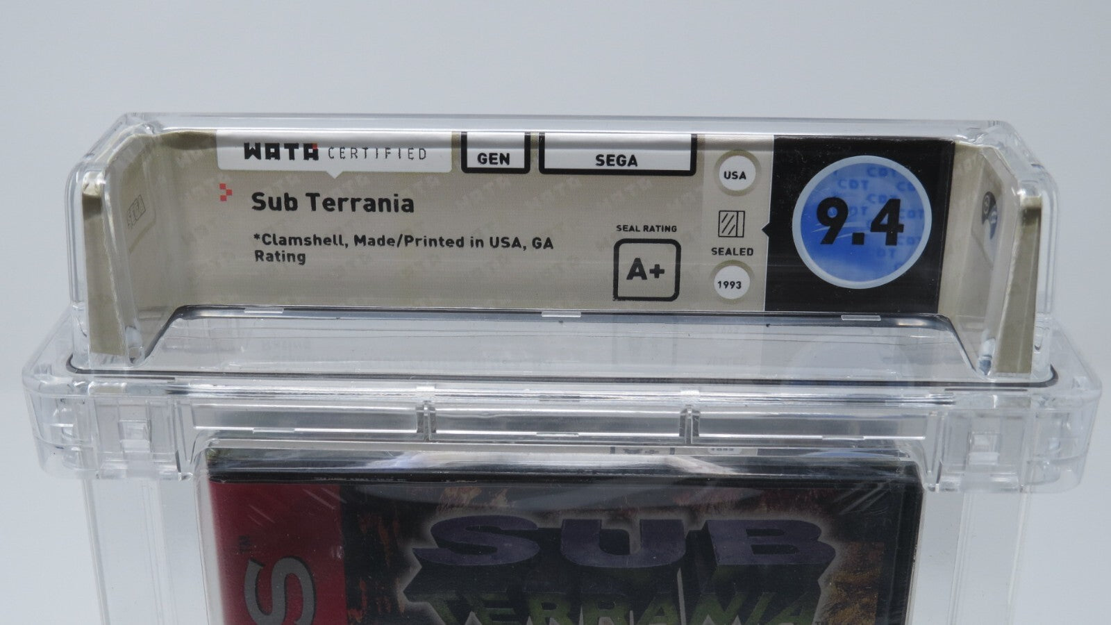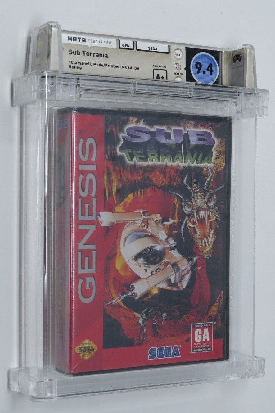 Up for auction is a Sub Terrania Sega Genesis Sealed Video Game. This sealed game has been graded a 9.4 by Wata. The seal on the game was graded an A+. This is a great chance to pick up a classic game. If you have any questions please feel free to ask!