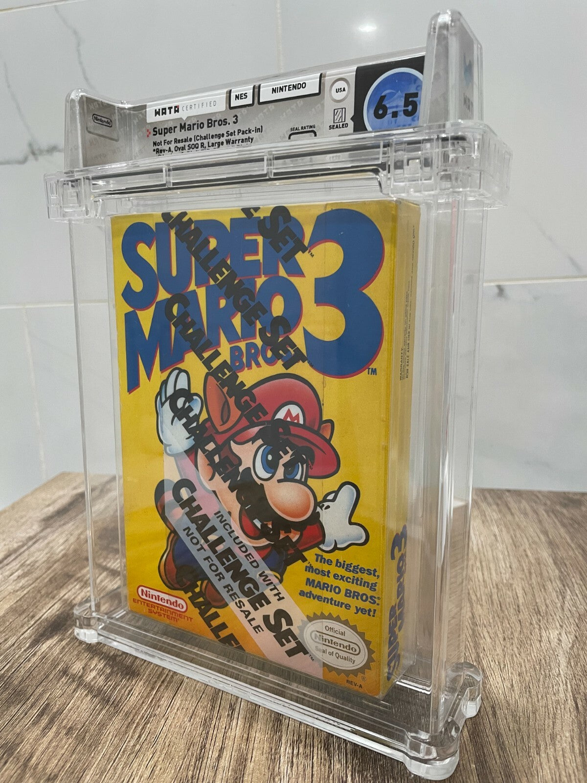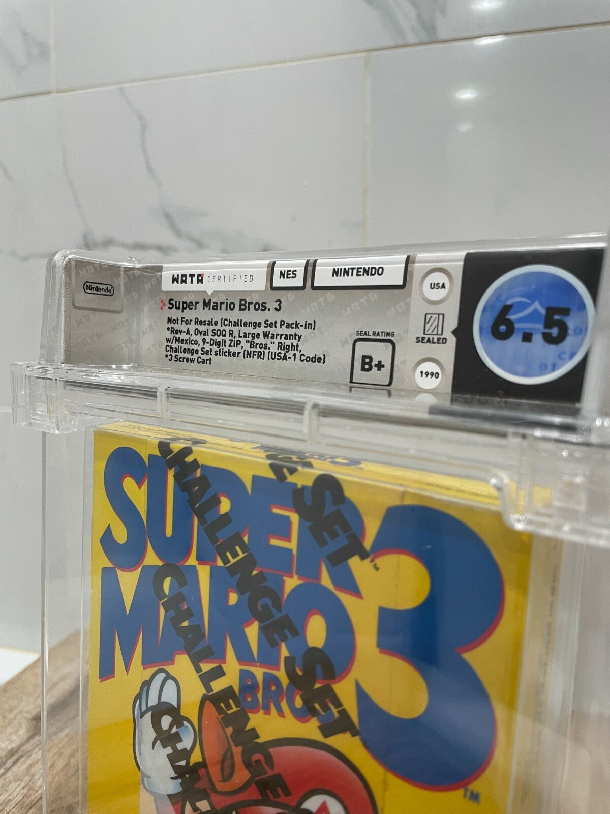 Up for auction is a Factory Sealed Super Mario Brothers 3 NES Video Game.  This game was for Nintendo and was released in 1990. This game has been graded a 6.5 by Wata.  The seal was graded a B+.  This release was part of the Challenge Series.  This is a tough to find sealed game that is always in demand.  This is a great chance to pick up an Nintendo classic!