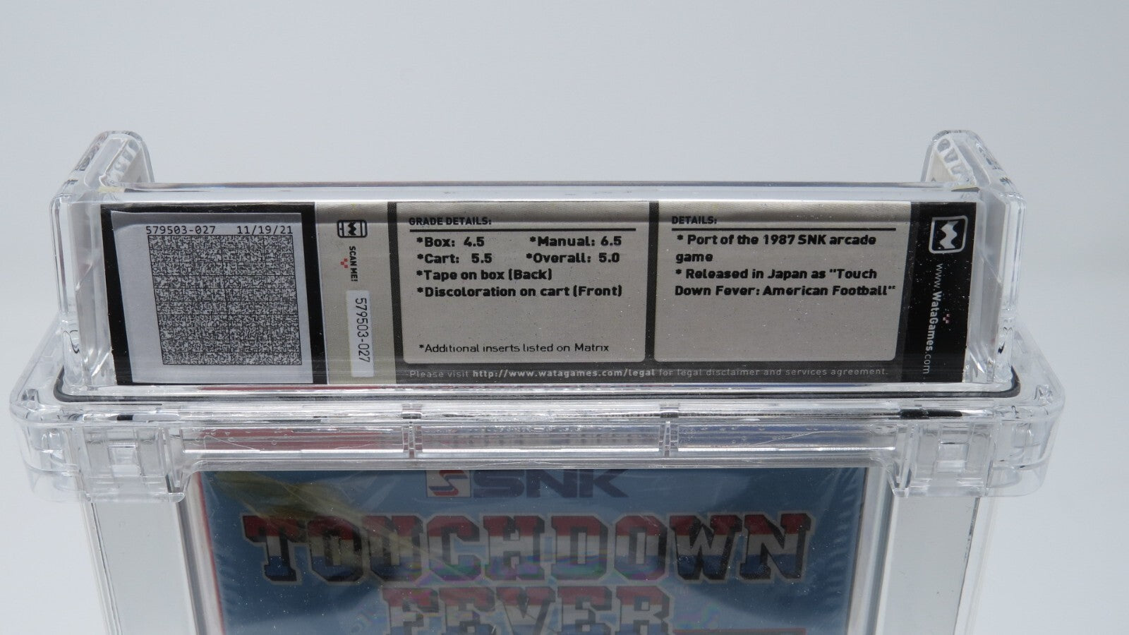 Up for auction is an Original Touchdown Fever Nintendo Complete In Box Video Game. This game has been graded a 5.0 by Wata. This is a great chance to pick up a classic Nintendo game!