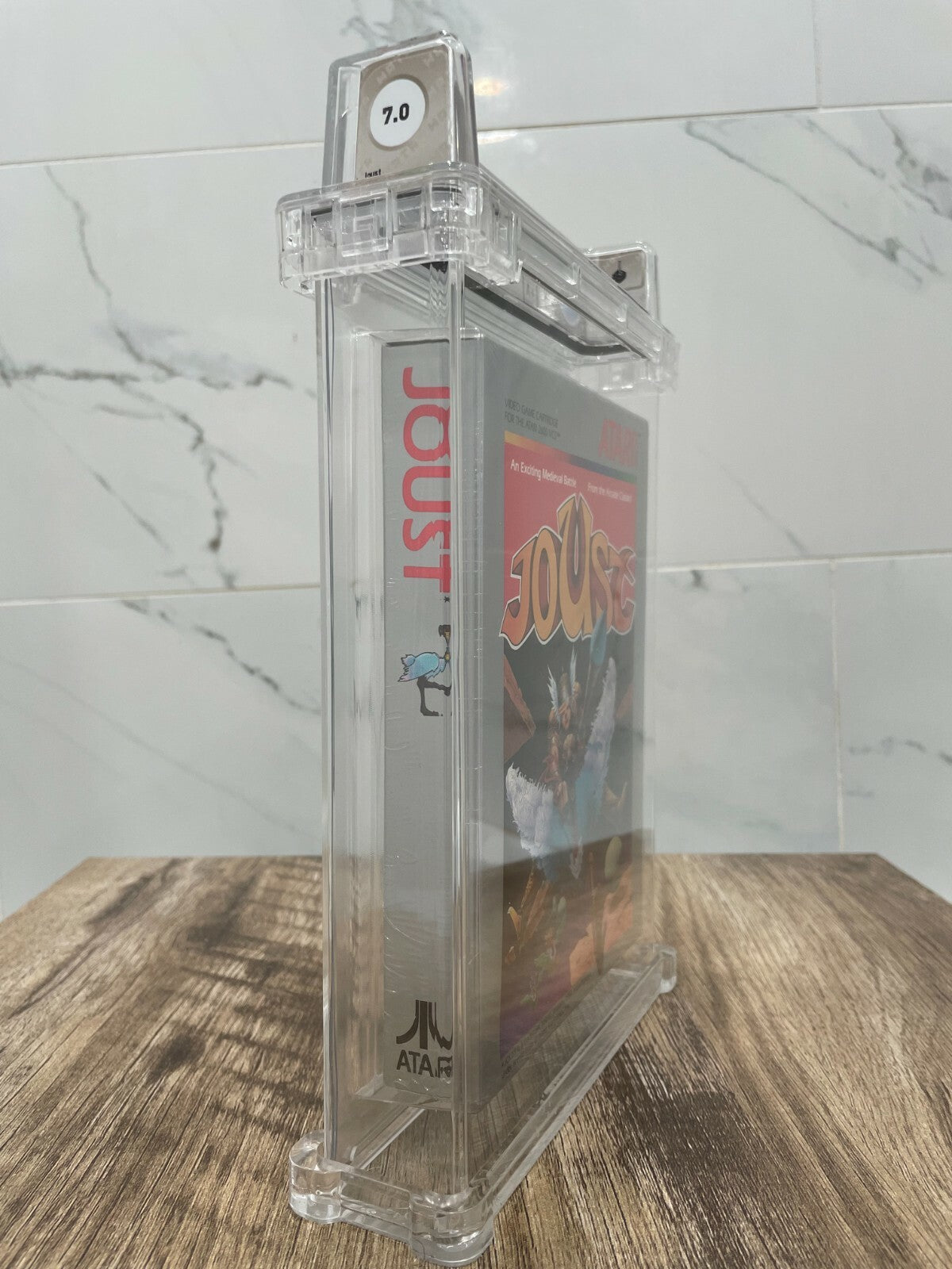 Up for auction is a Joust Unopened Atari 2600 Video Game. This game was for Atari and was released in 1983. This game has been graded a 7.0 by Wata. The seal has been graded an A+. This is a tough to find game. This is a great chance to pick up an Atari classic!