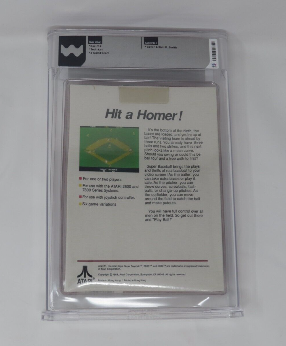 Up for auction is an Unopened Super Baseball Atari Video Game. This game was for Atari and was released in 1988. This game has been graded a 9.4 by Wata. The seal has been graded an A++. This is a great chance to pick up an Atari classic!