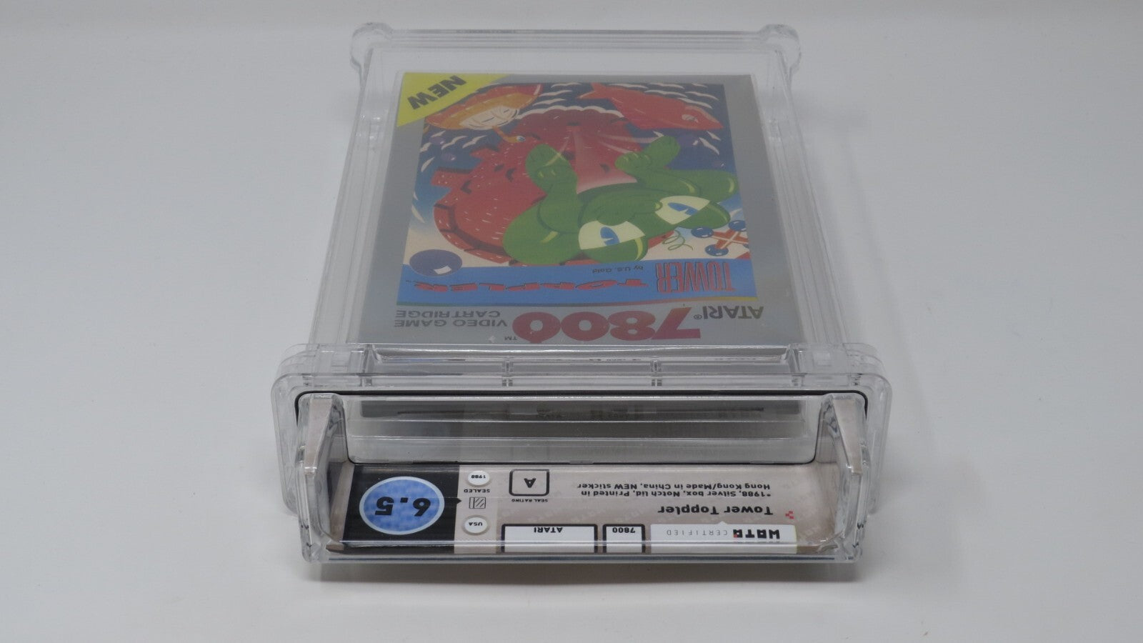 Up for auction is a Tower Toppler Unopened Atari 7800 Video Game. This game was for Atari and was released in 1988. This game has been graded a 6.5 by Wata. The seal has been graded an A. This is a tough to find game. This is a great chance to pick up an Atari classic!