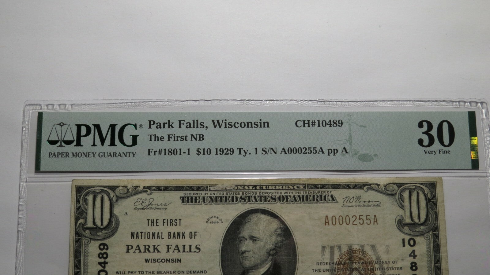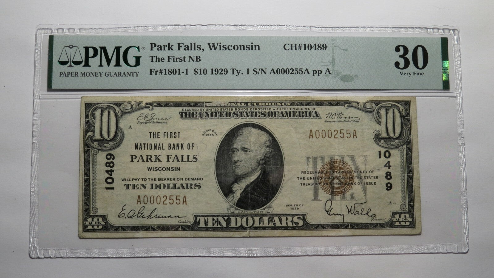 $10 1929 Park Falls Wisconsin WI National Currency Bank Note Bill Ch #10489 VF30