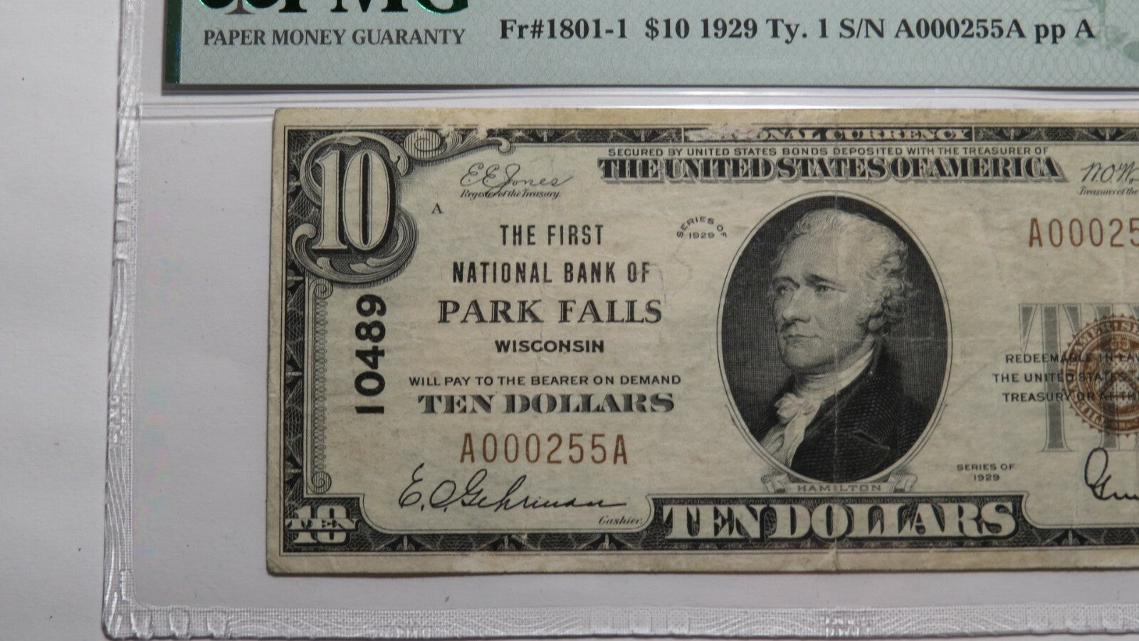 $10 1929 Type 1 Park Falls Wisconsin National Currency Note